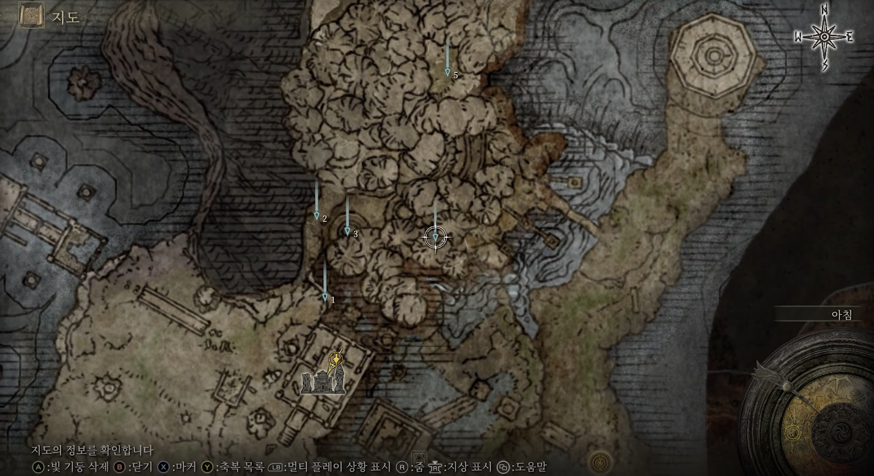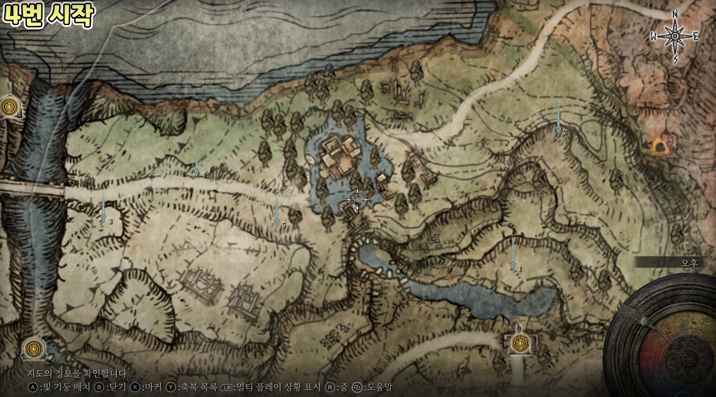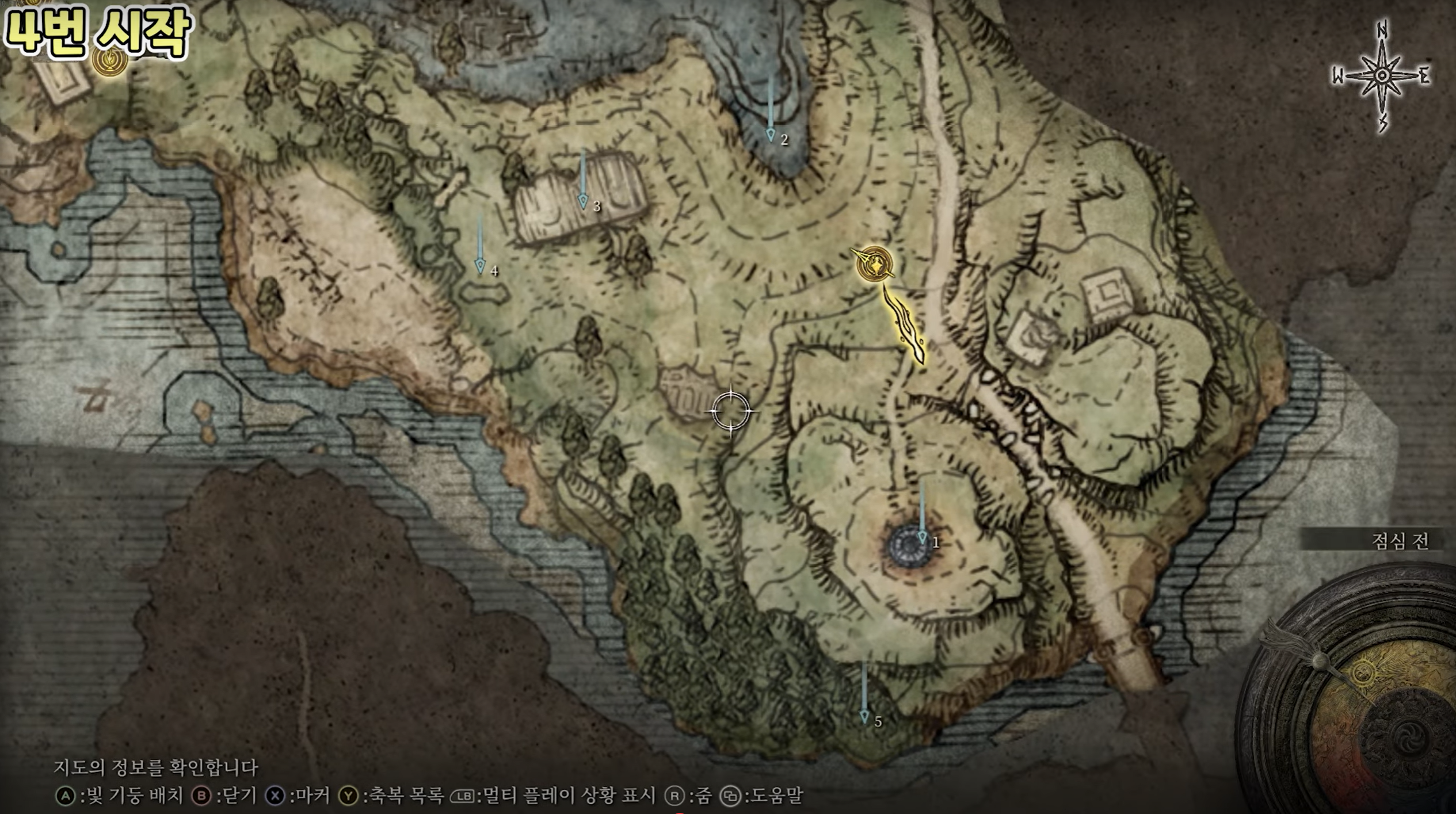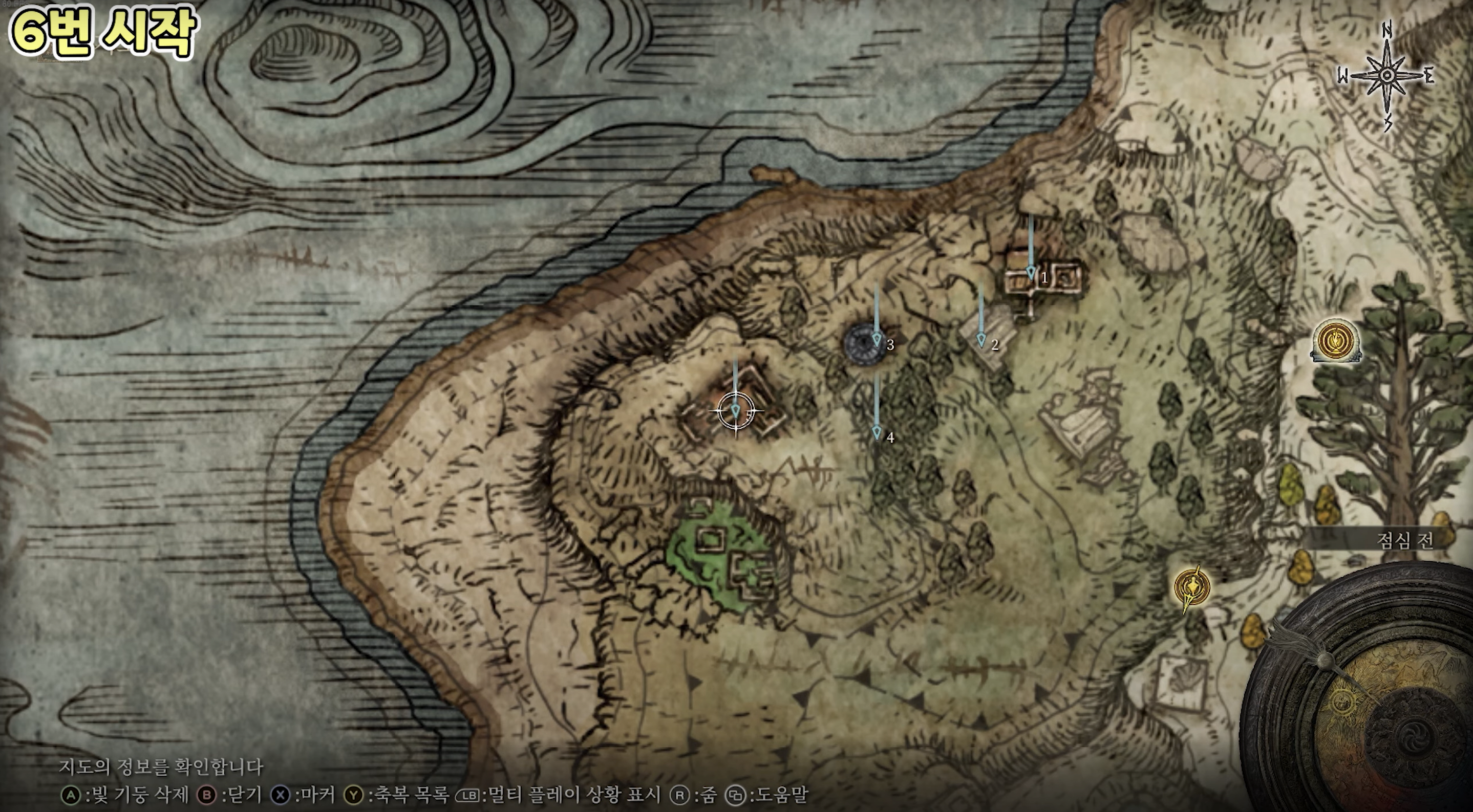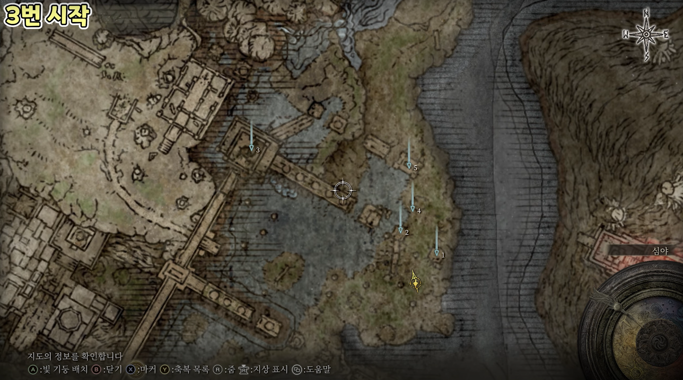 4번: 나무 타고 오른쪽 타고 동굴로 들어감 - 큰 개미에게서 '희인의 룬' 획득 - 색 잃은 단석[6] - 엘데의 유성