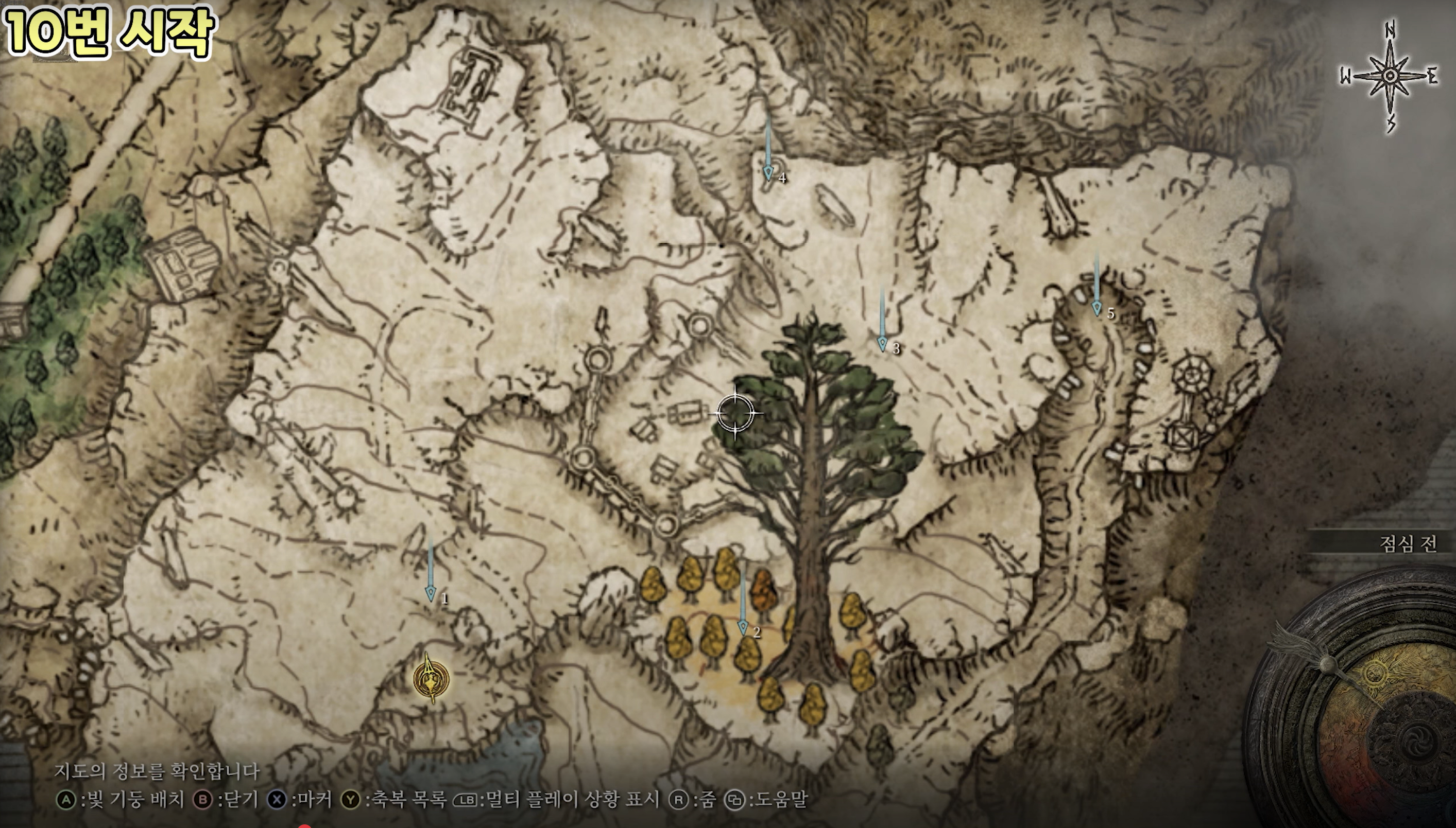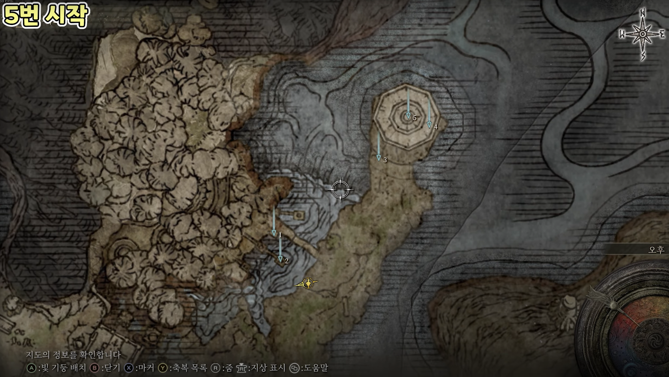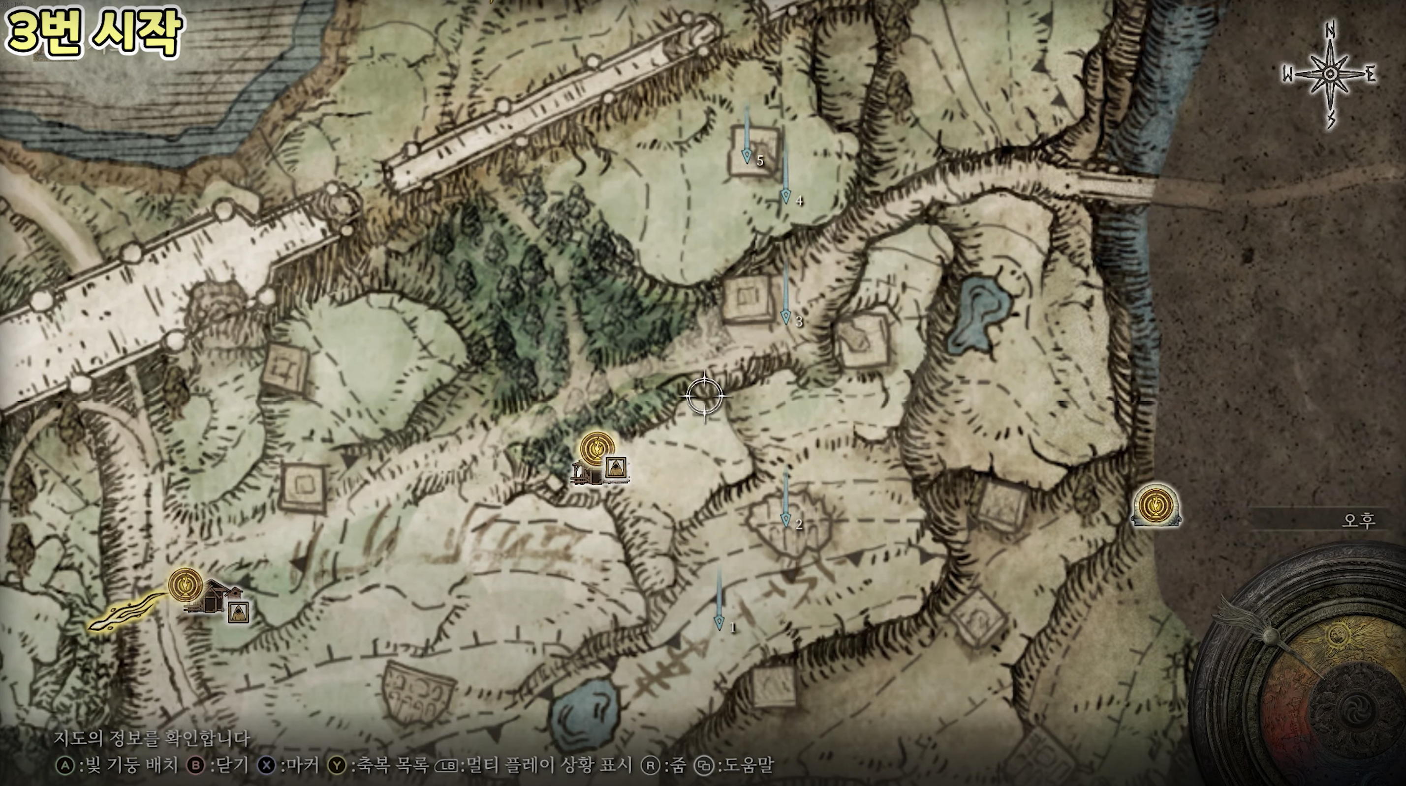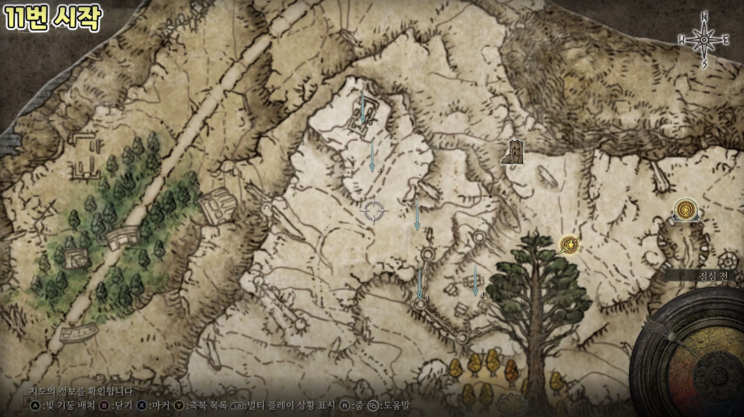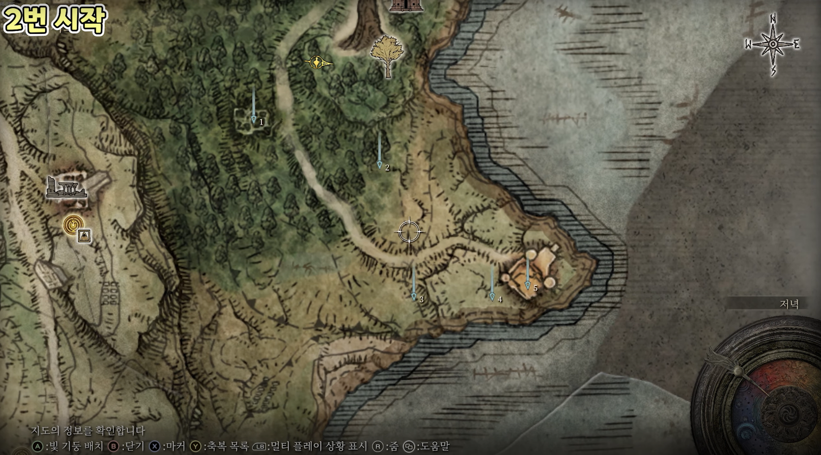 4번: 나무 타고 오른쪽 타고 동굴로 들어감 - 큰 개미에게서 '희인의 룬' 획득 - 색 잃은 단석[6] - 엘데의 유성