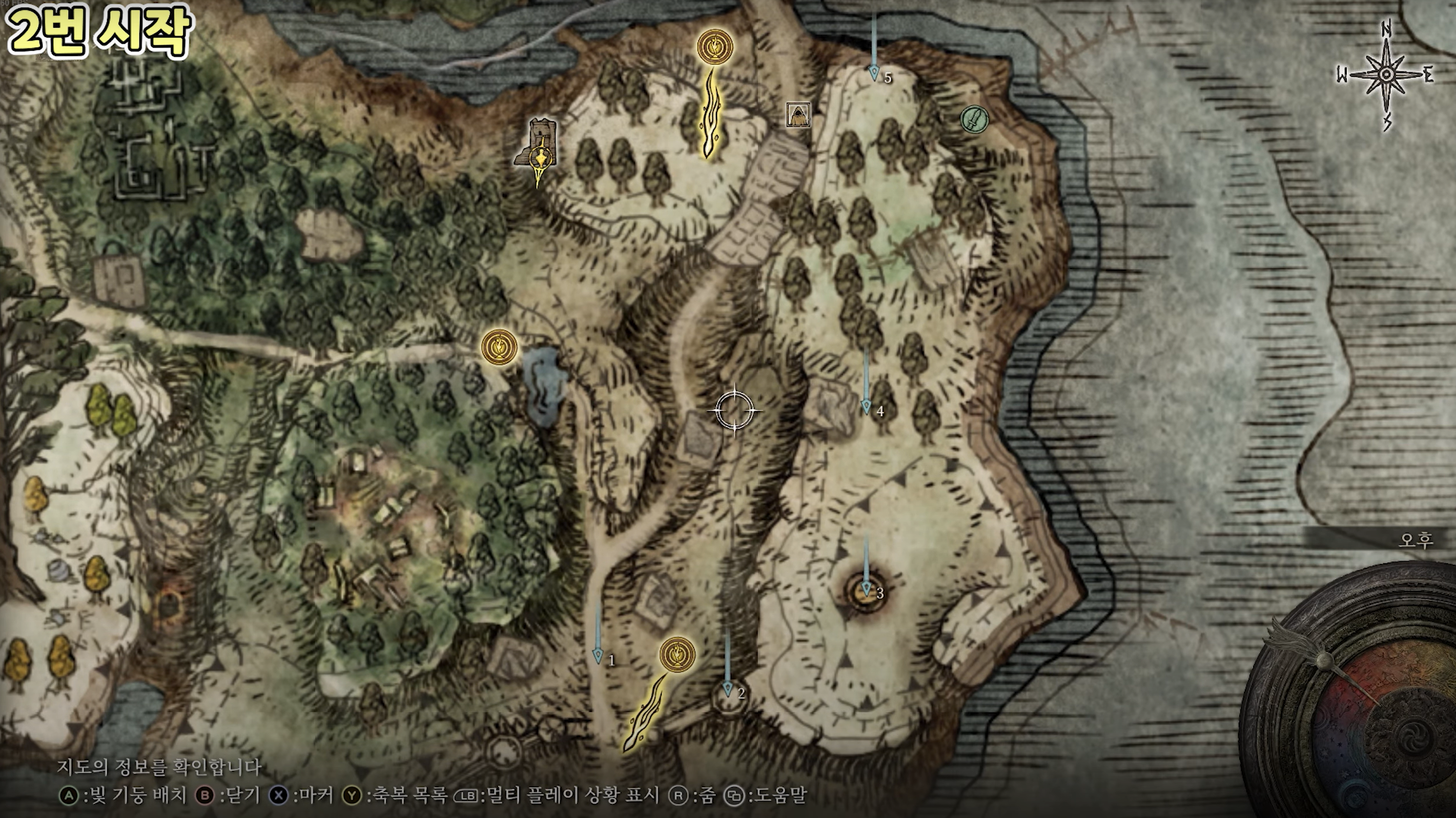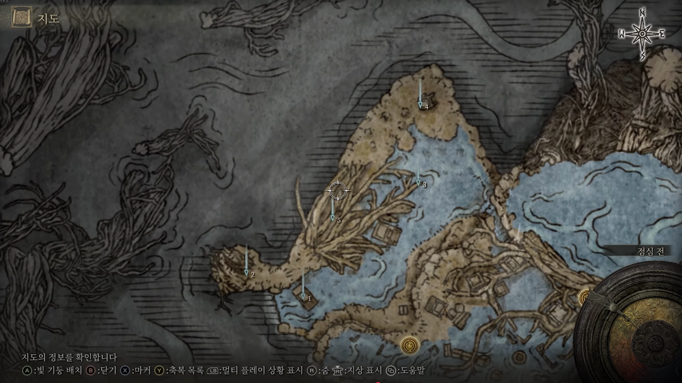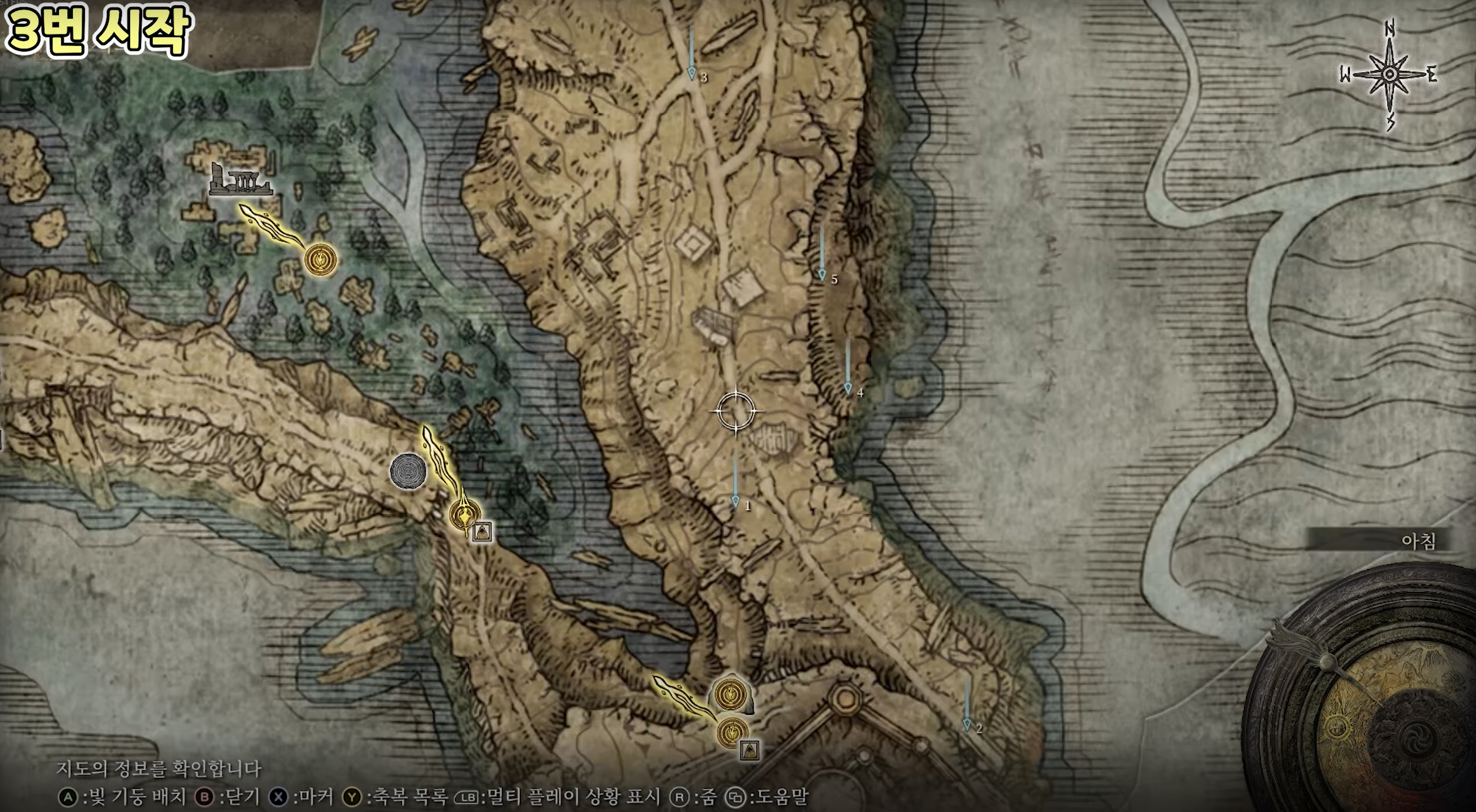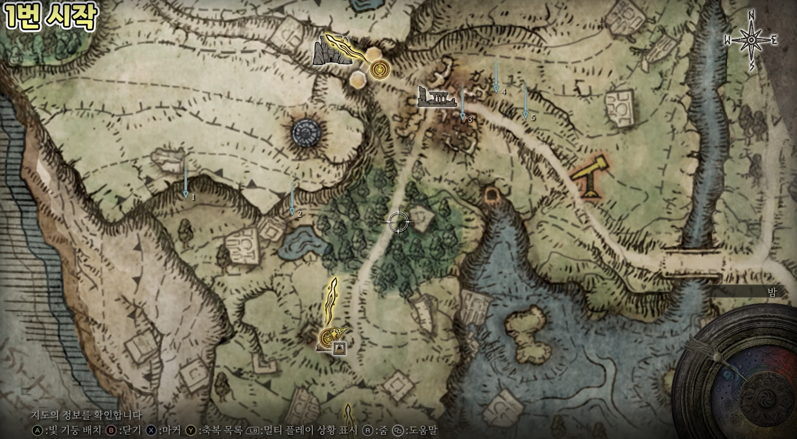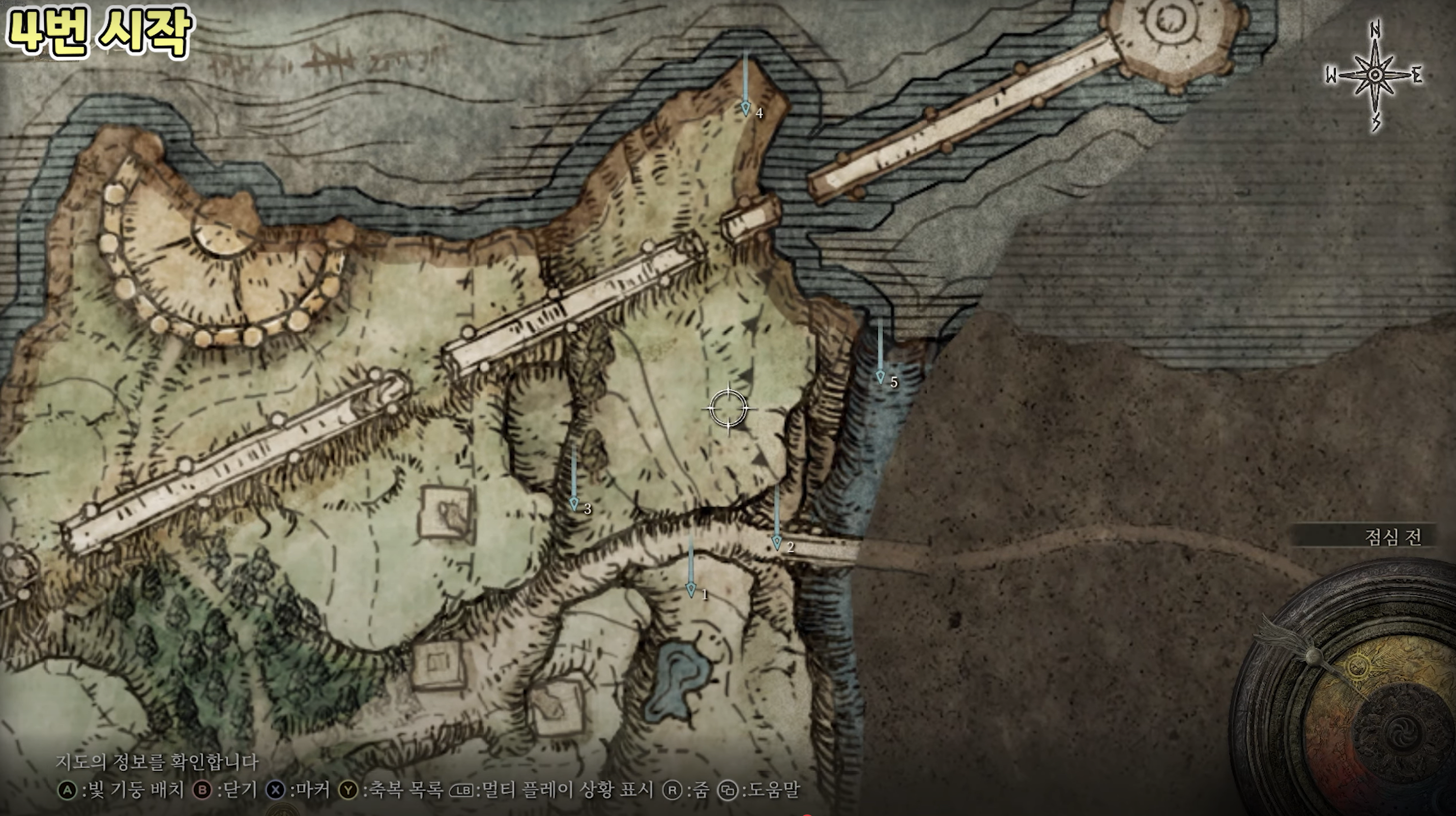 4번: 나무 타고 오른쪽 타고 동굴로 들어감 - 큰 개미에게서 '희인의 룬' 획득 - 색 잃은 단석[6] - 엘데의 유성