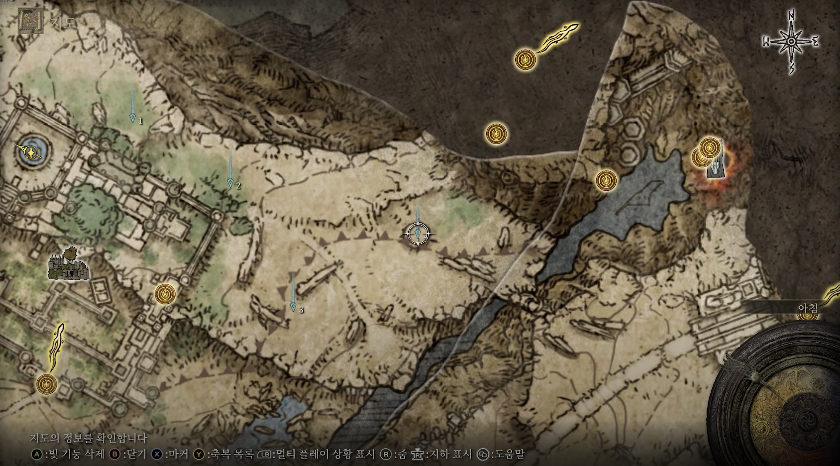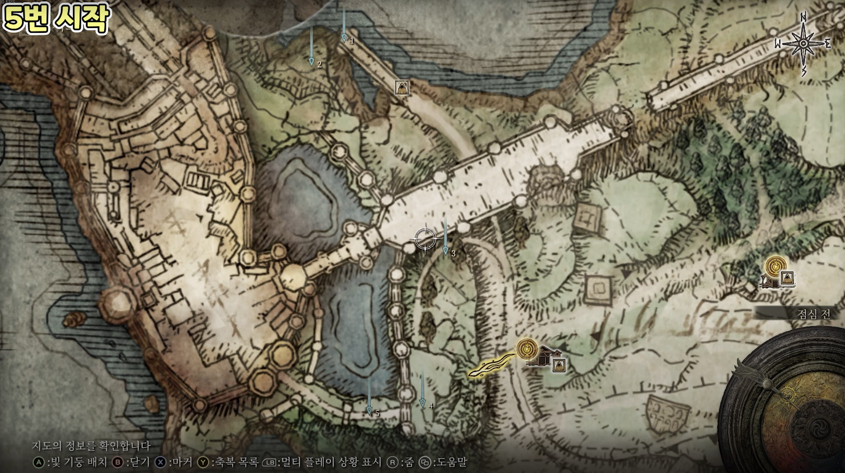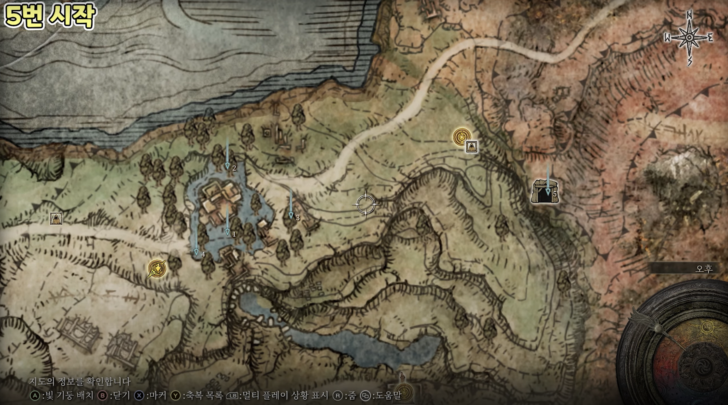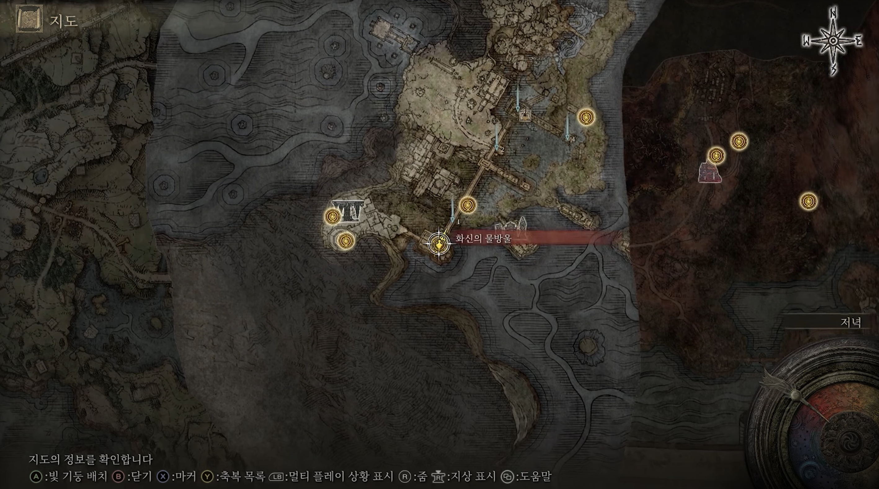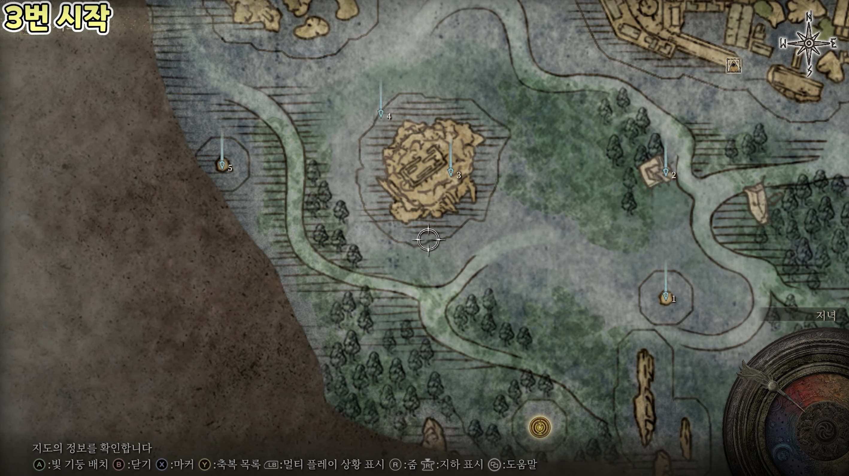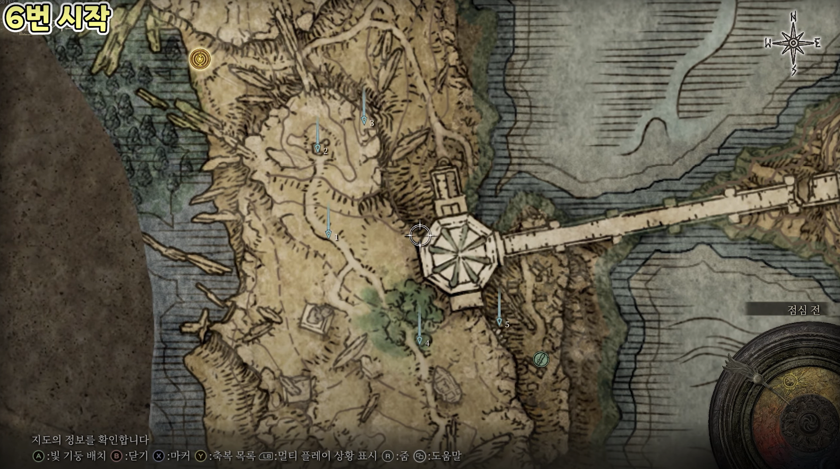 4번: 나무 타고 오른쪽 타고 동굴로 들어감 - 큰 개미에게서 '희인의 룬' 획득 - 색 잃은 단석[6] - 엘데의 유성