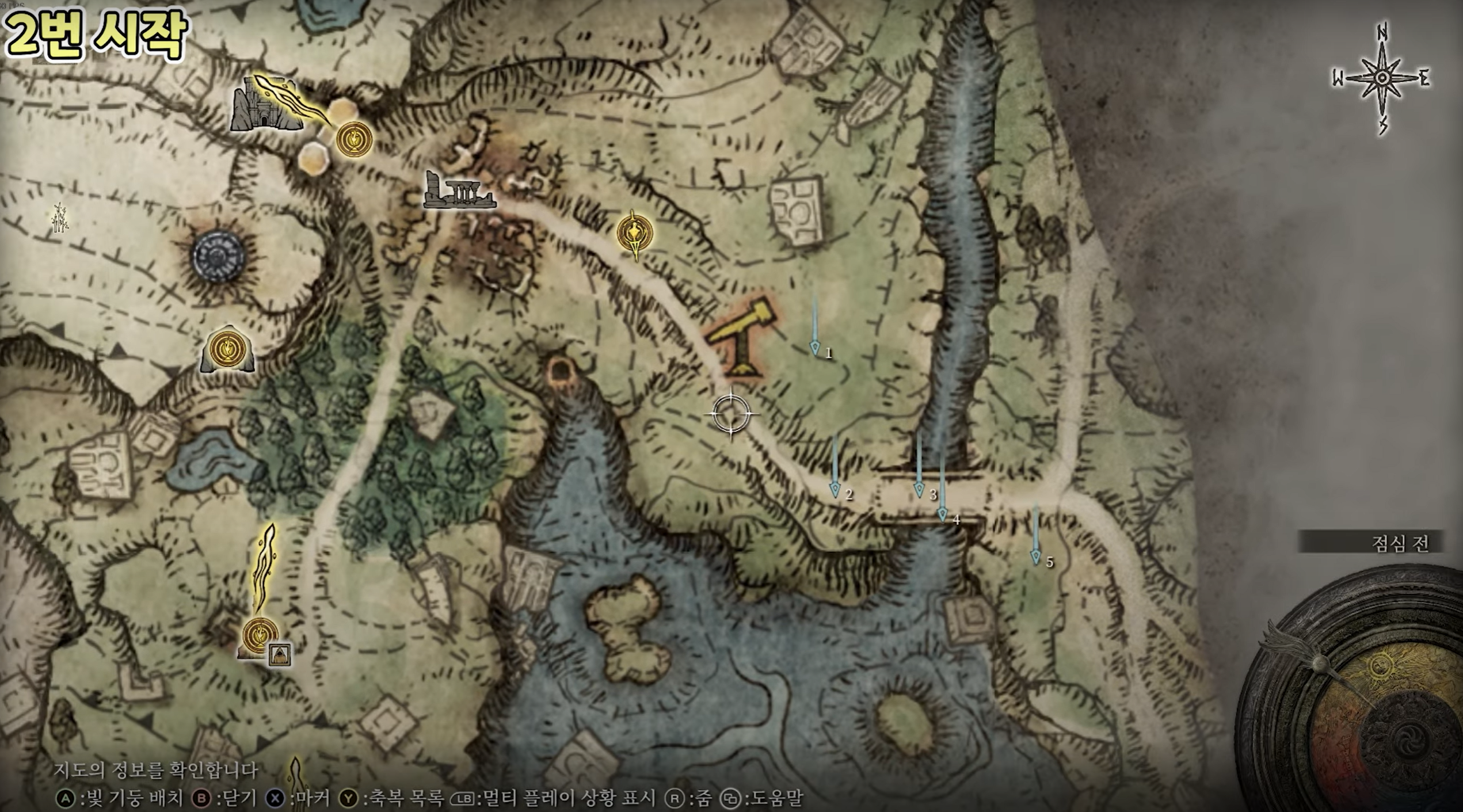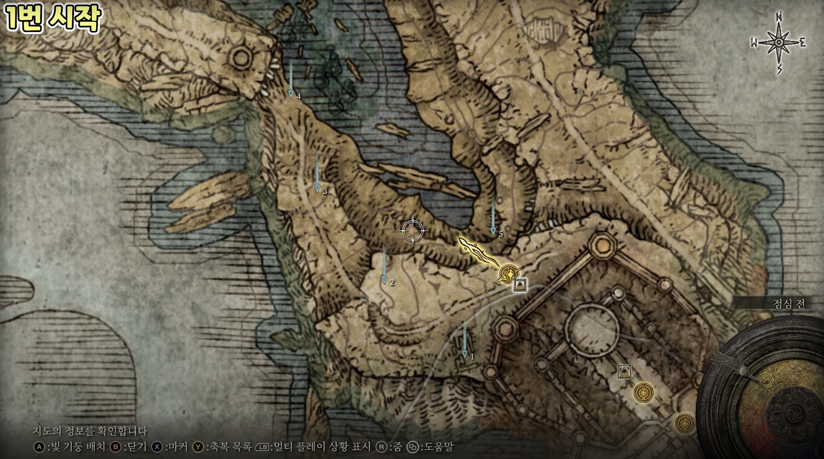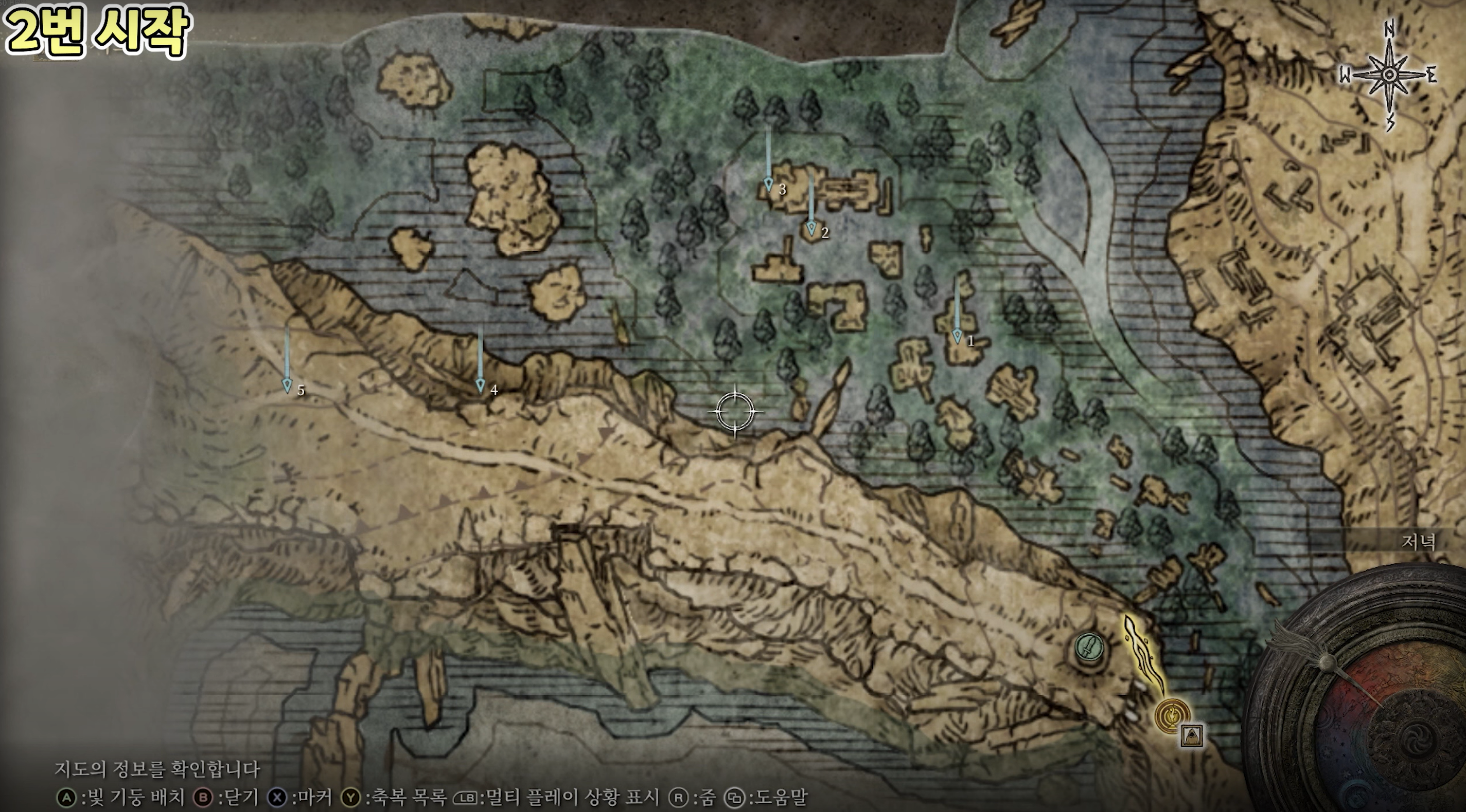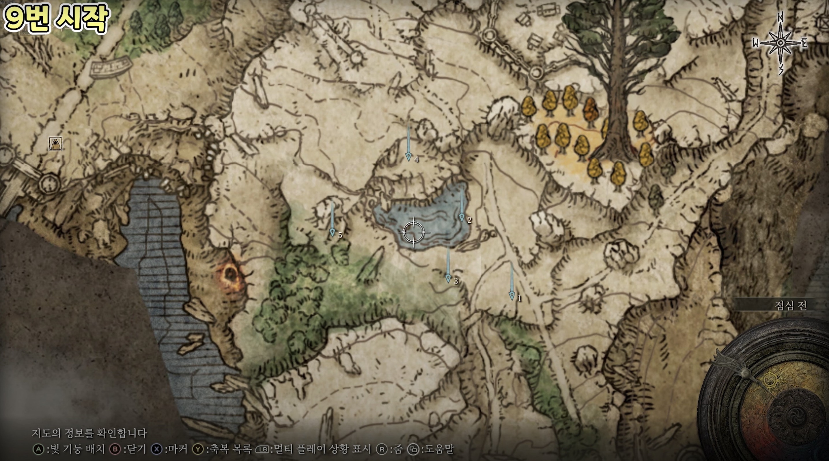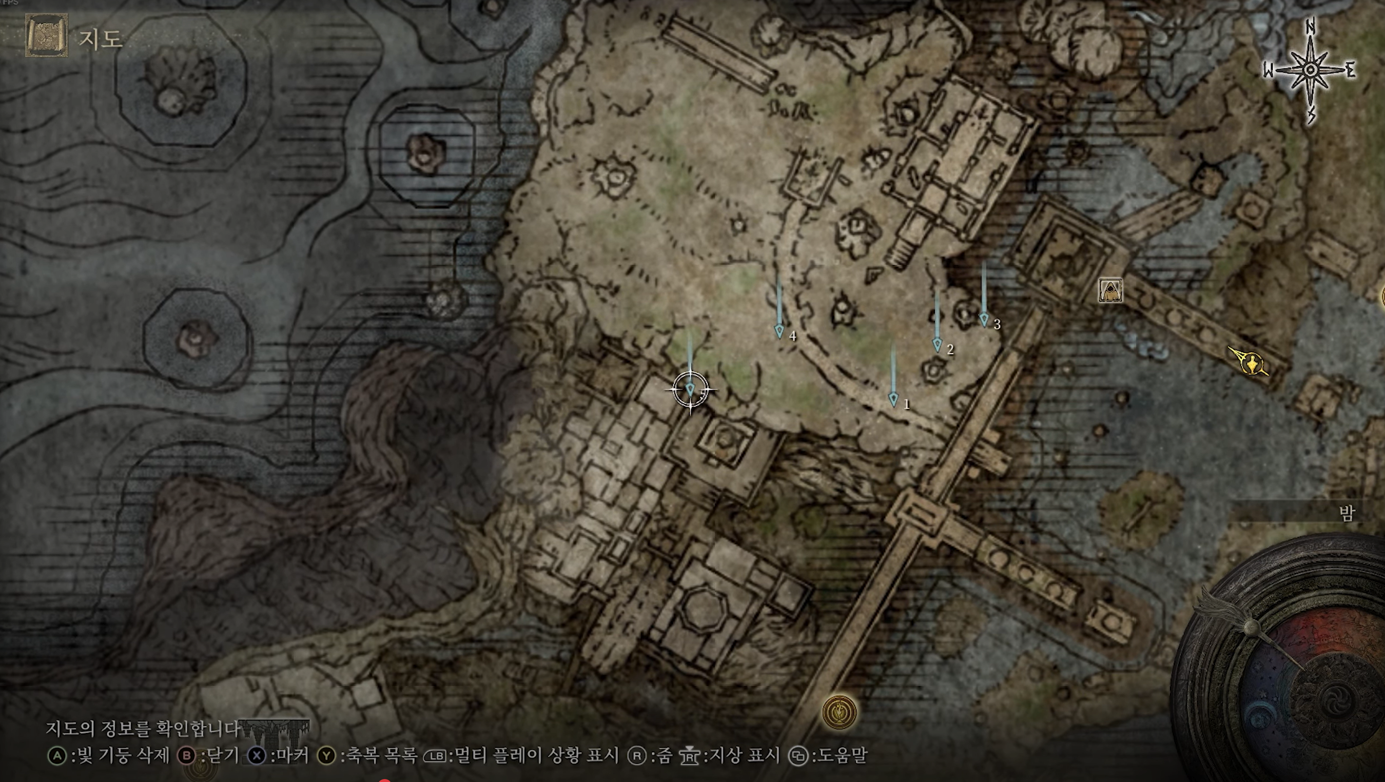 4번: 나무 타고 오른쪽 타고 동굴로 들어감 - 큰 개미에게서 '희인의 룬' 획득 - 색 잃은 단석[6] - 엘데의 유성