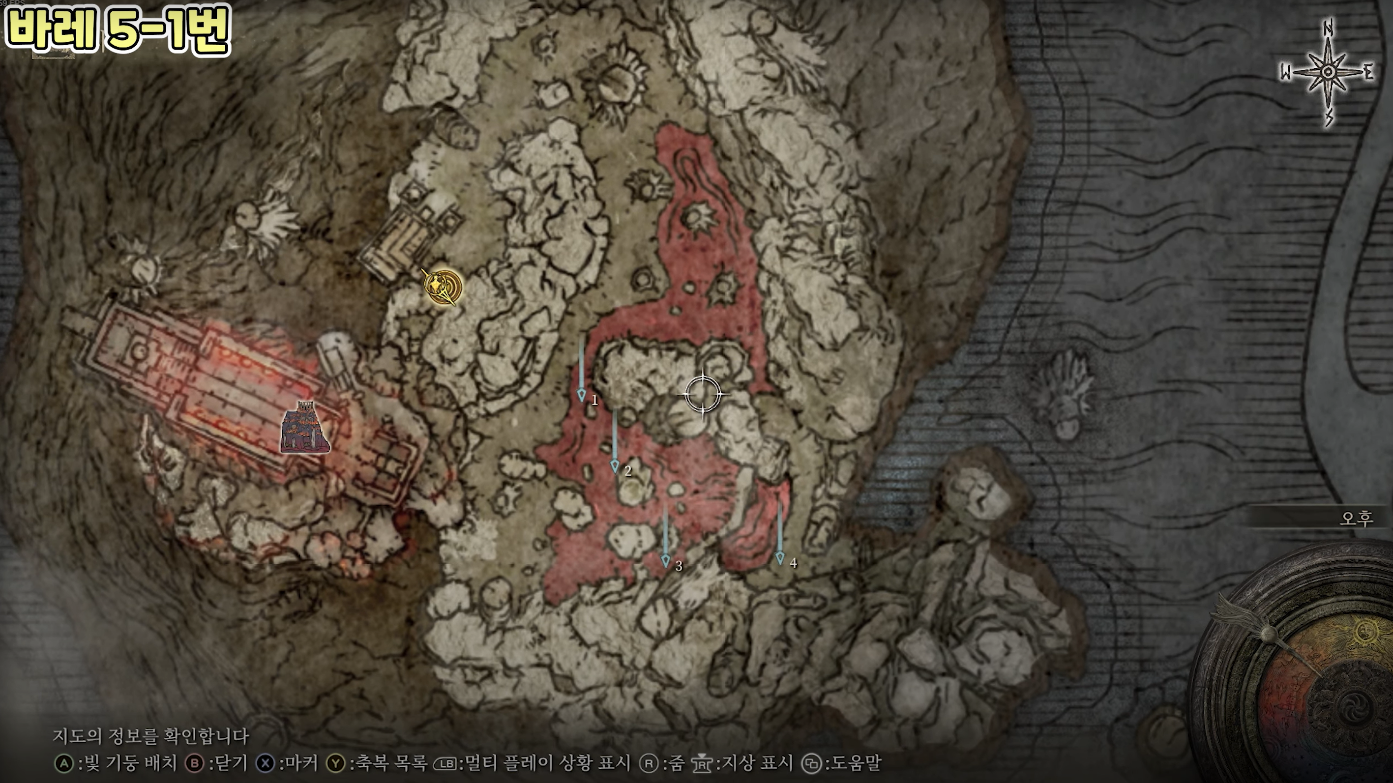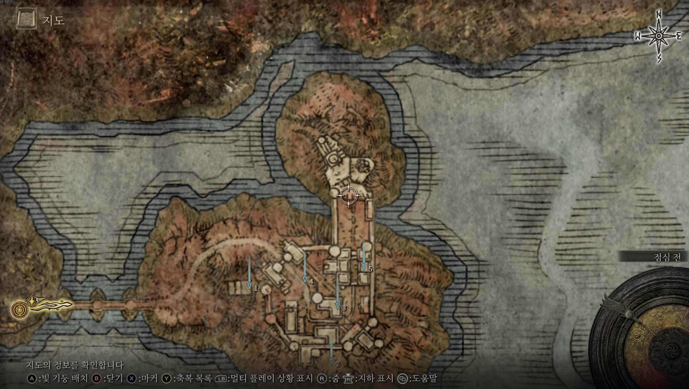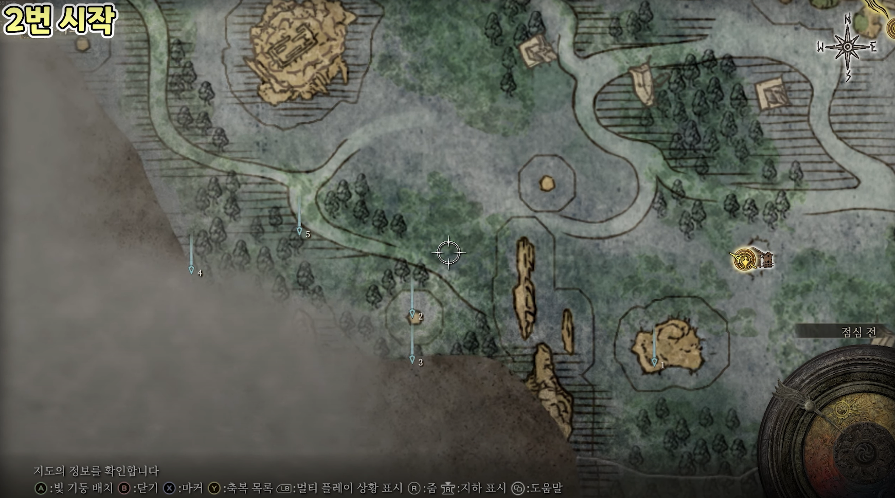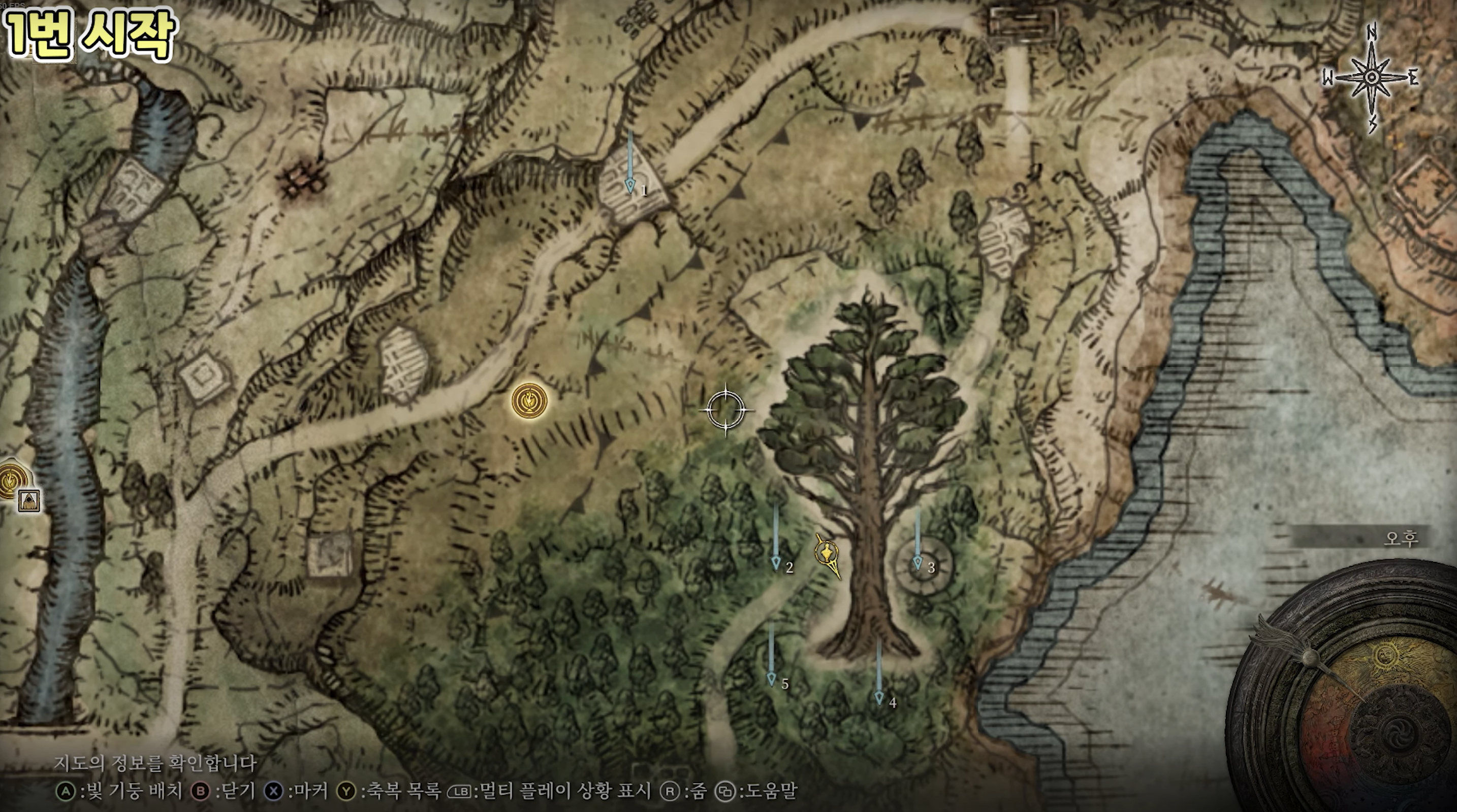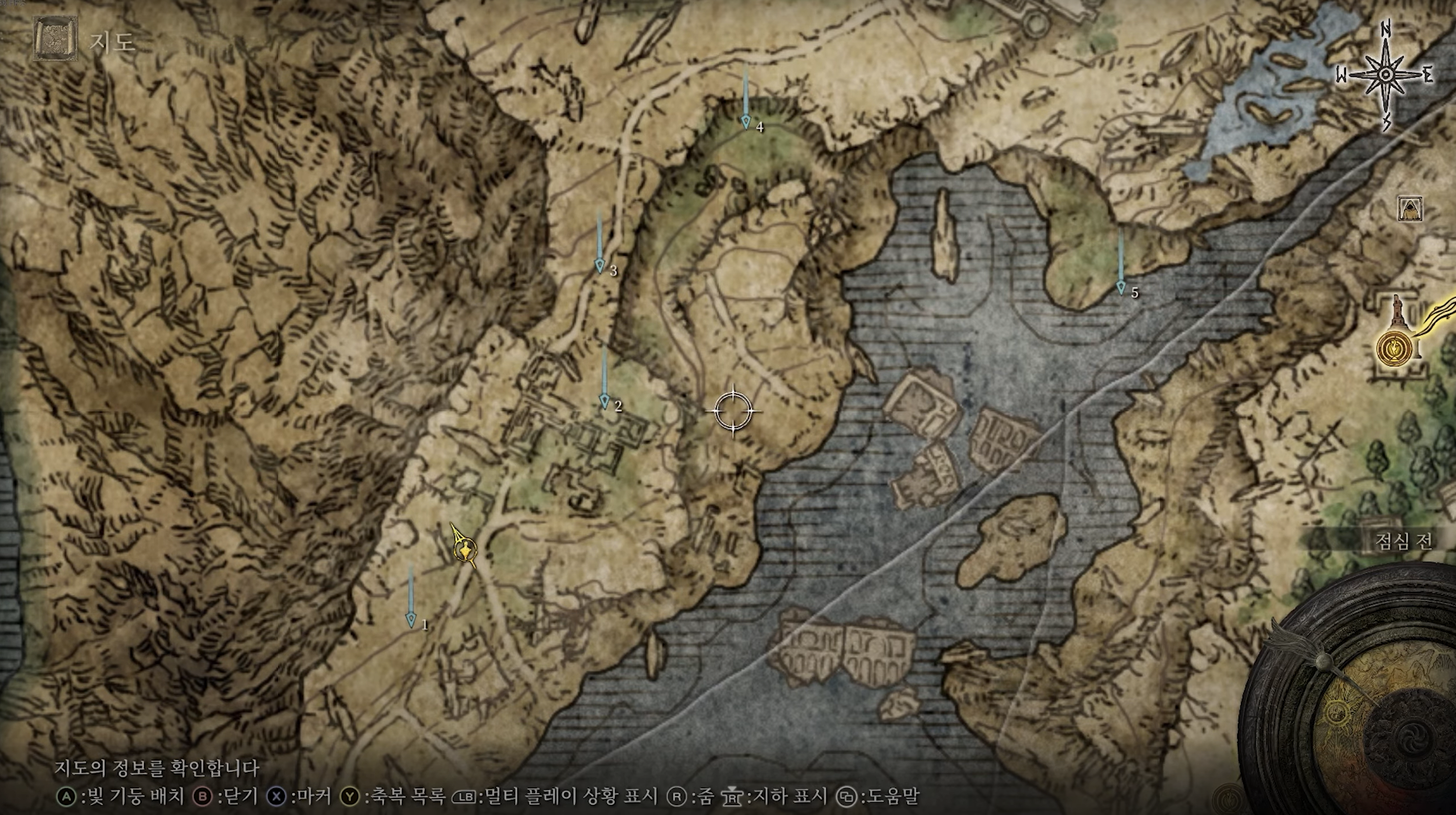 4번: 나무 타고 오른쪽 타고 동굴로 들어감 - 큰 개미에게서 '희인의 룬' 획득 - 색 잃은 단석[6] - 엘데의 유성