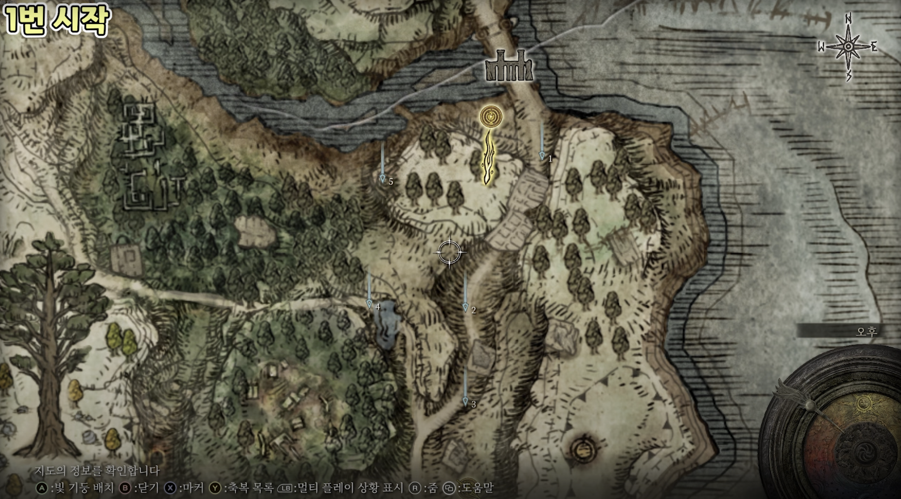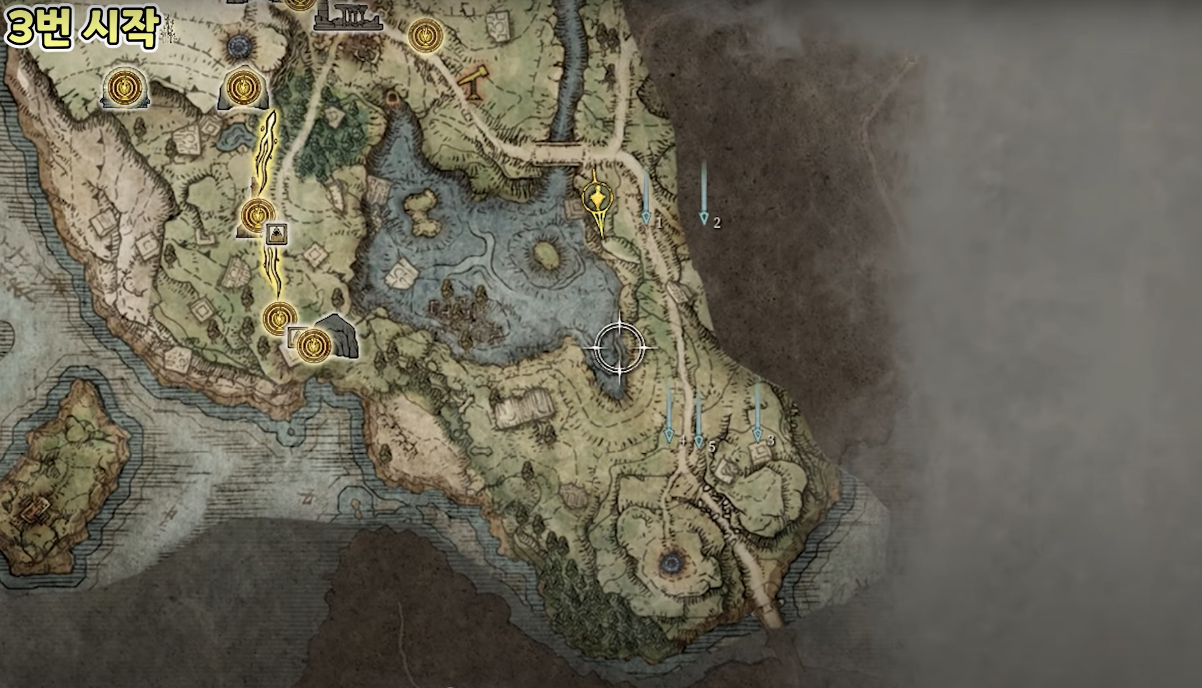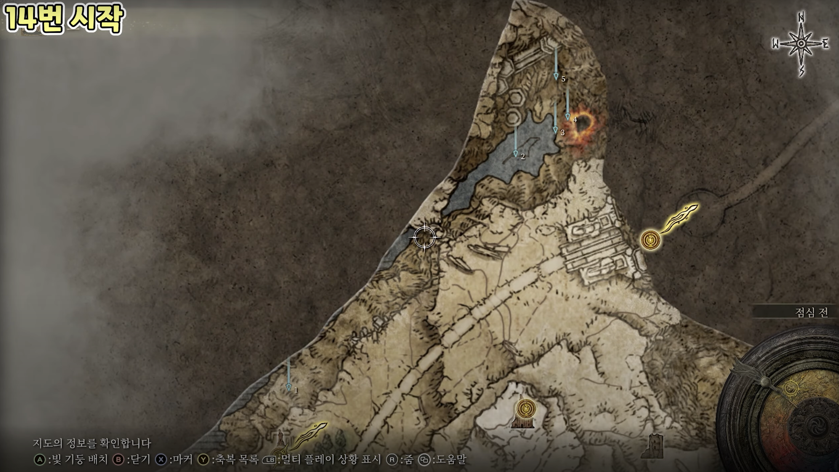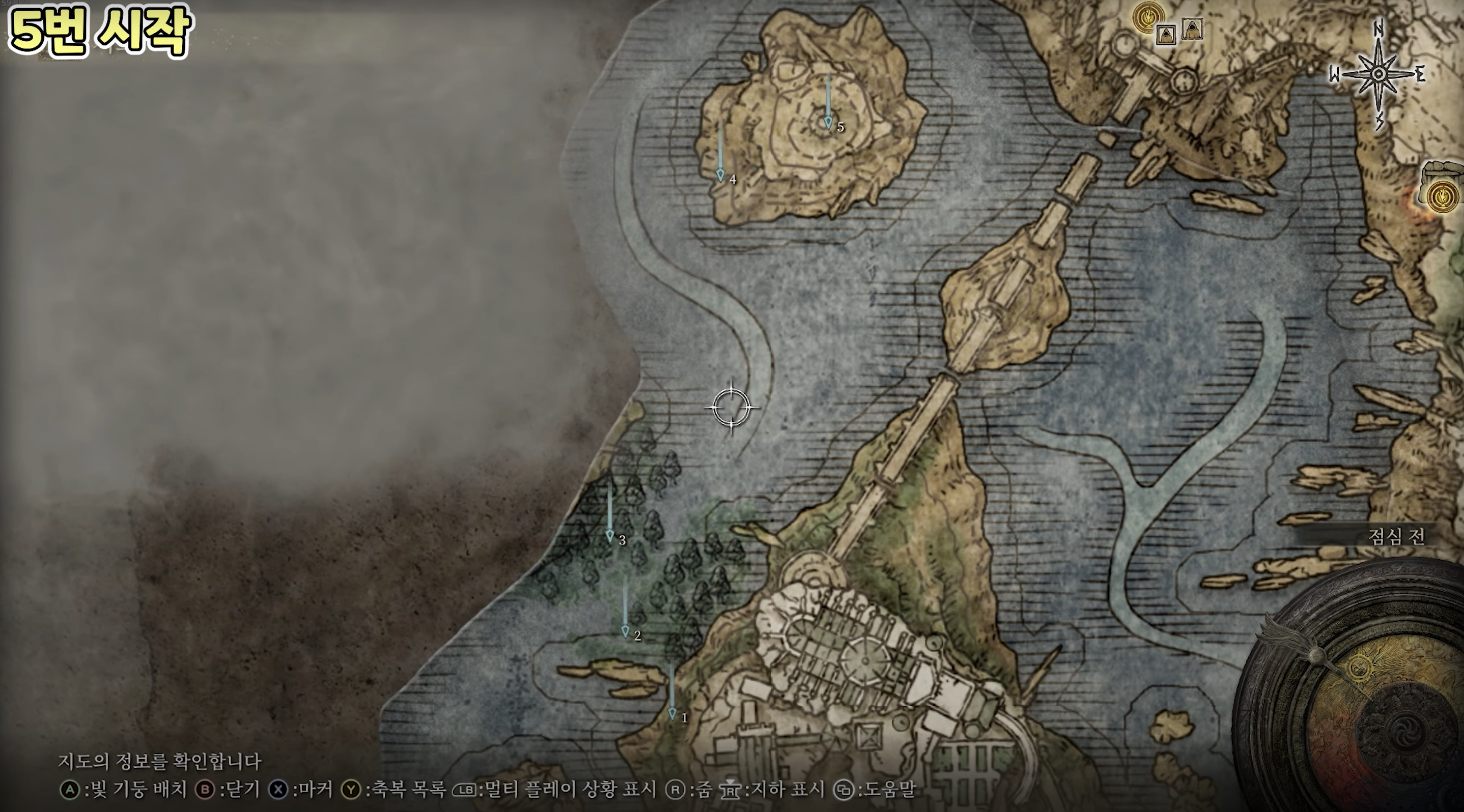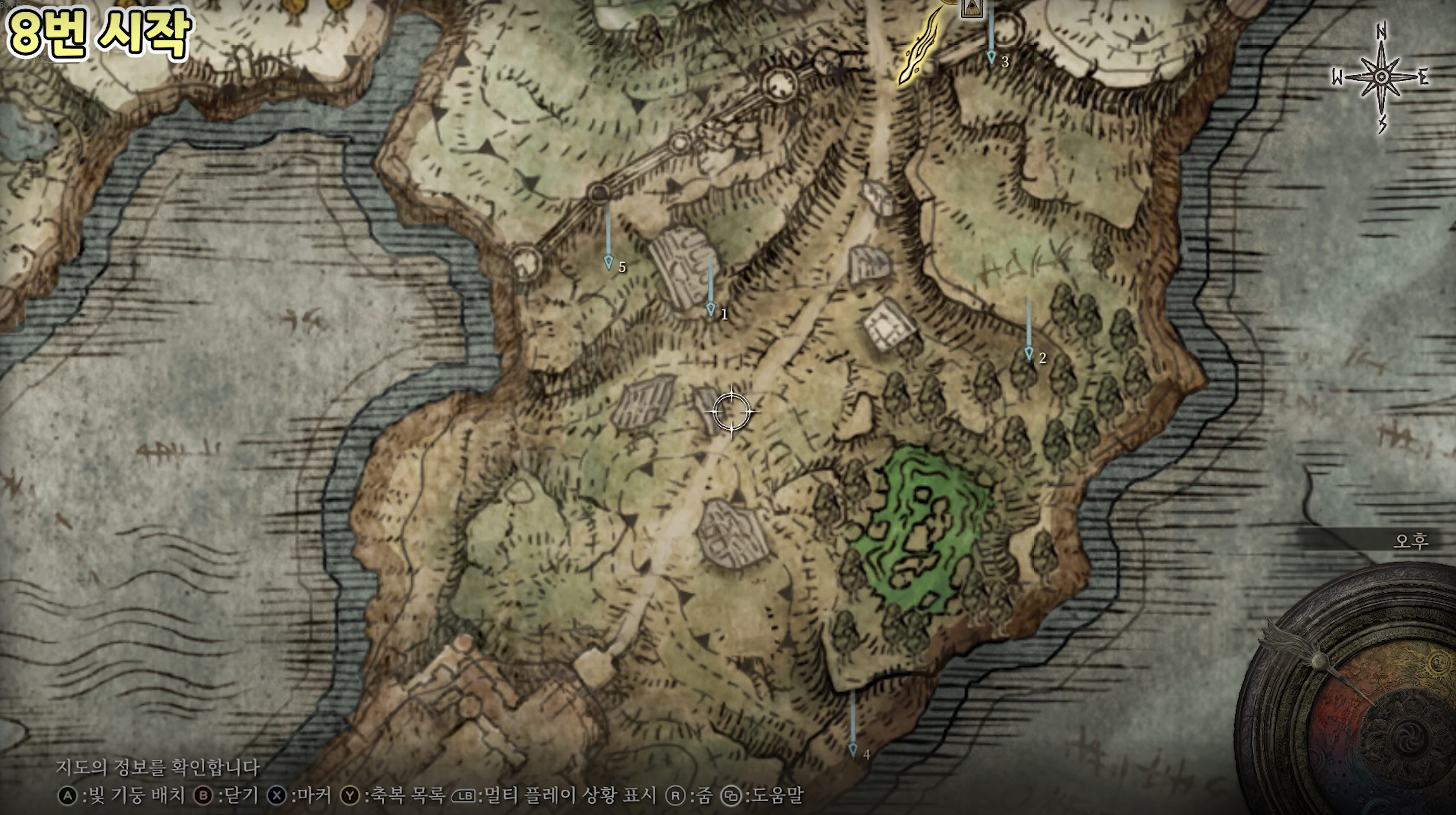 4번: 나무 타고 오른쪽 타고 동굴로 들어감 - 큰 개미에게서 '희인의 룬' 획득 - 색 잃은 단석[6] - 엘데의 유성