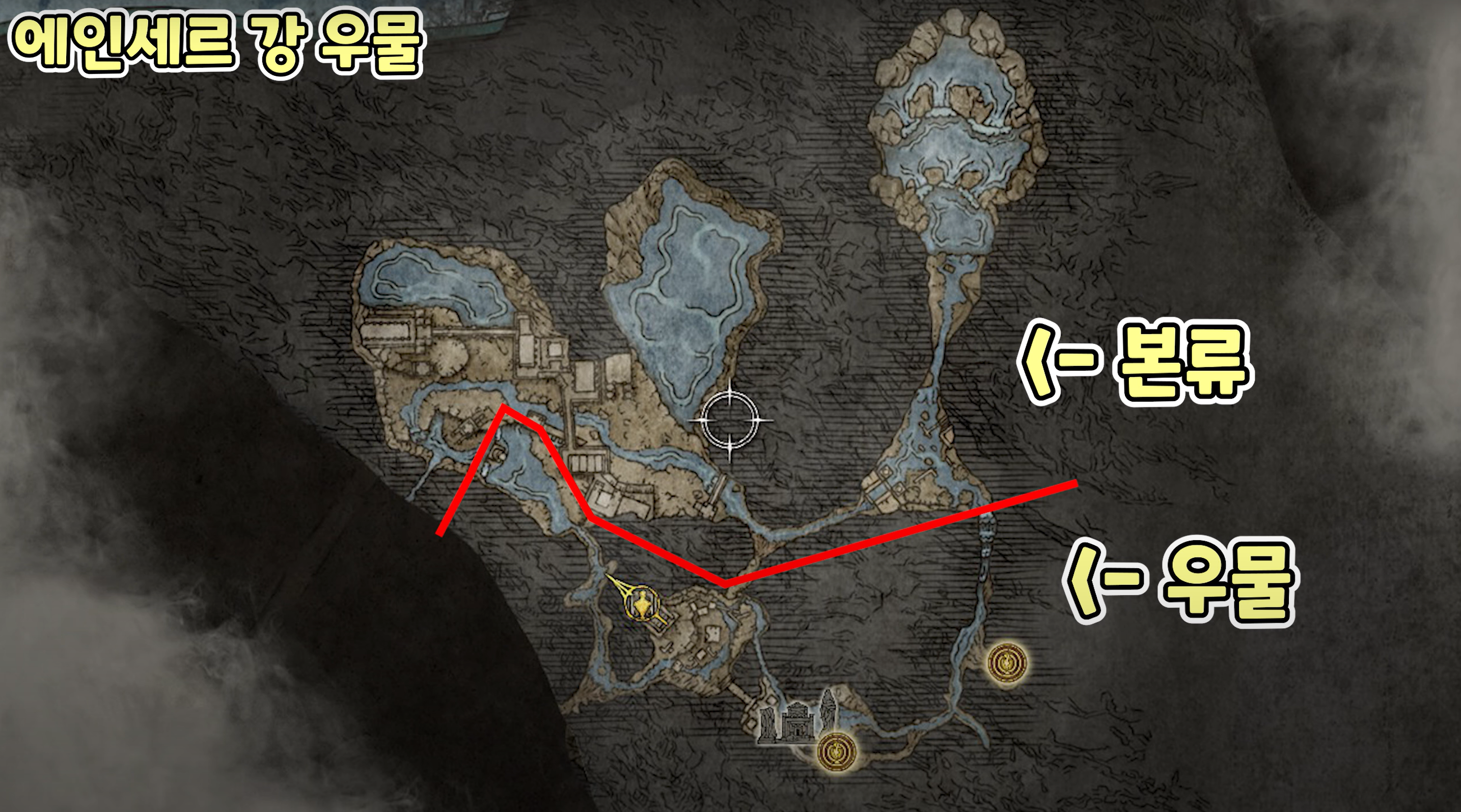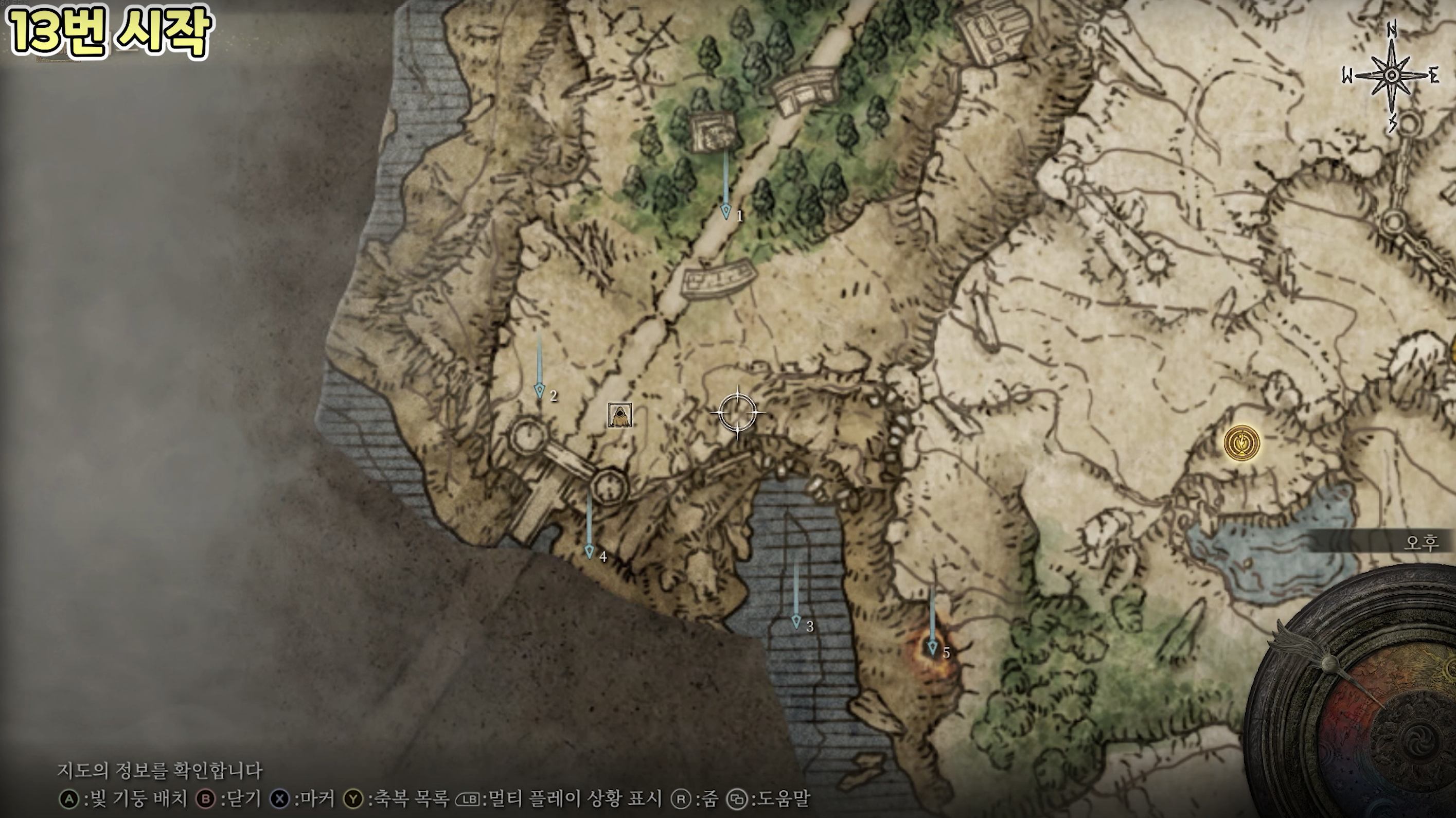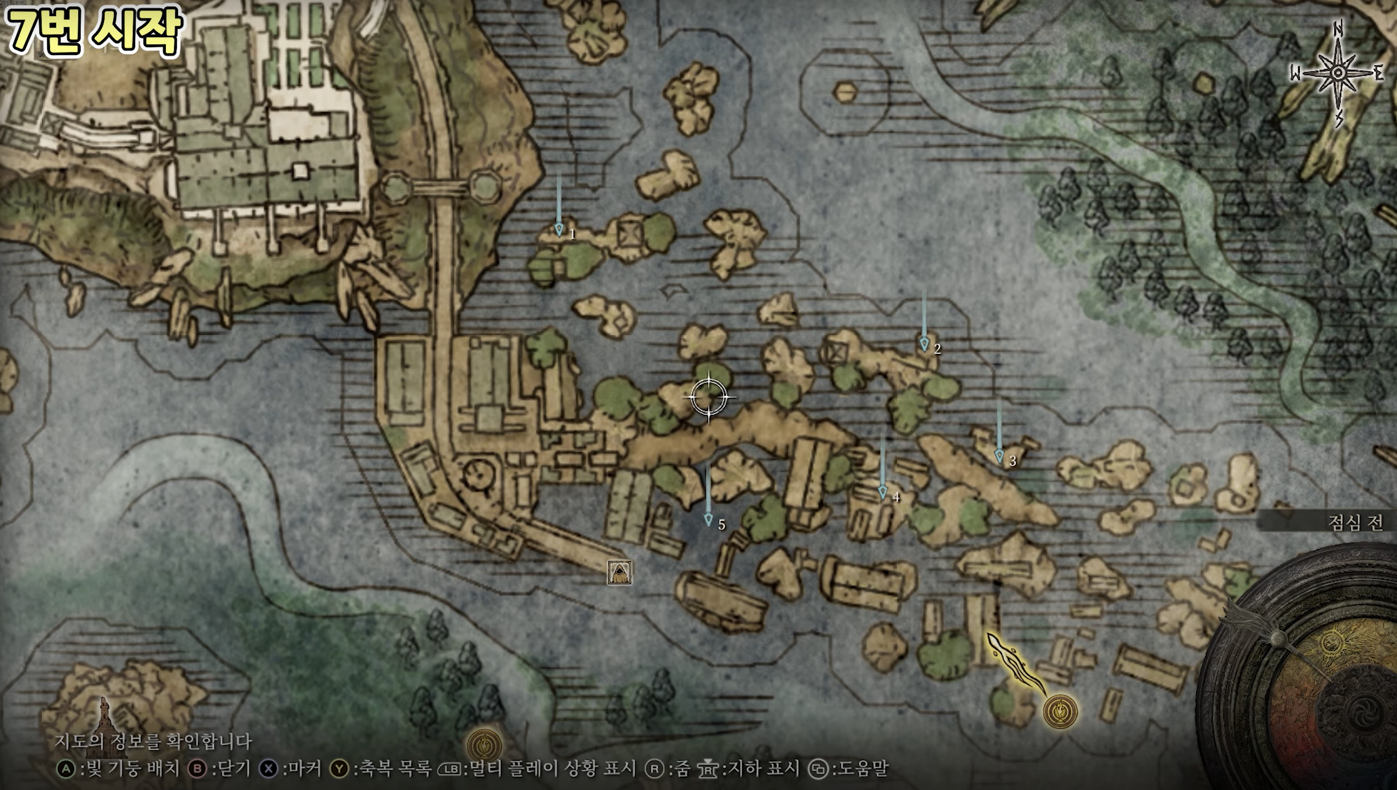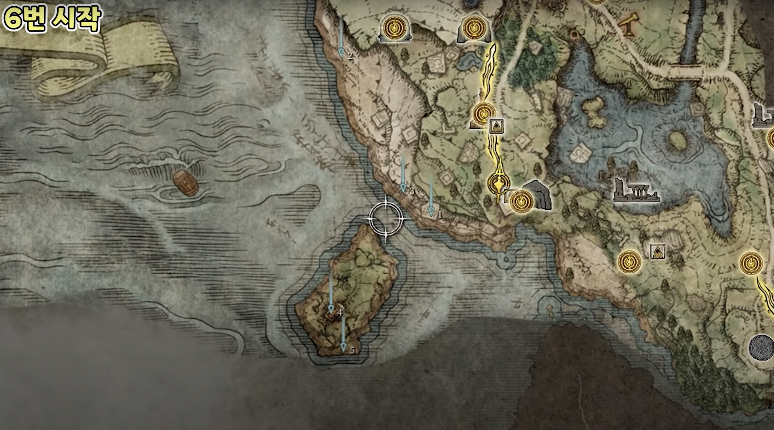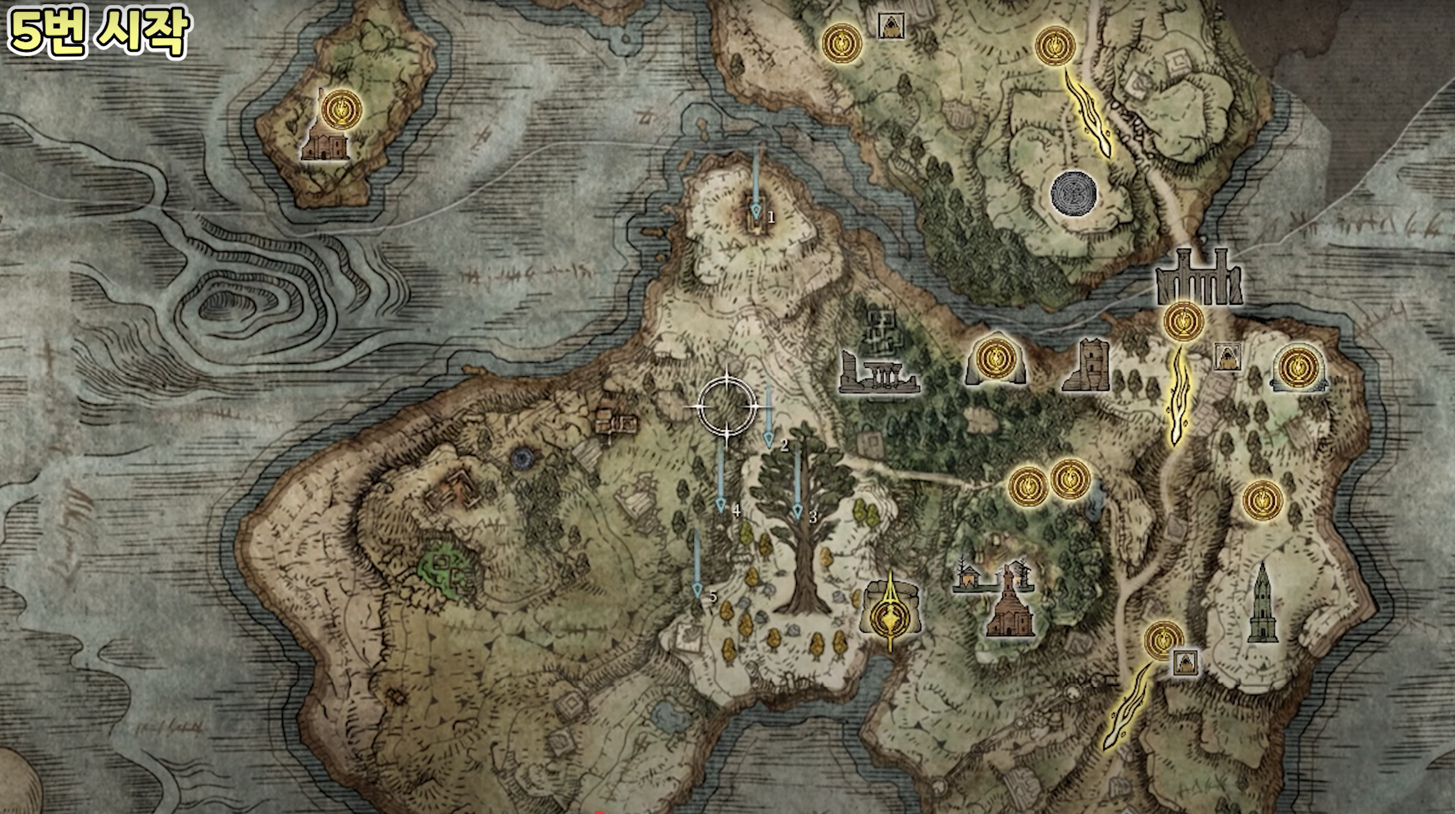 4번: 나무 타고 오른쪽 타고 동굴로 들어감 - 큰 개미에게서 '희인의 룬' 획득 - 색 잃은 단석[6] - 엘데의 유성