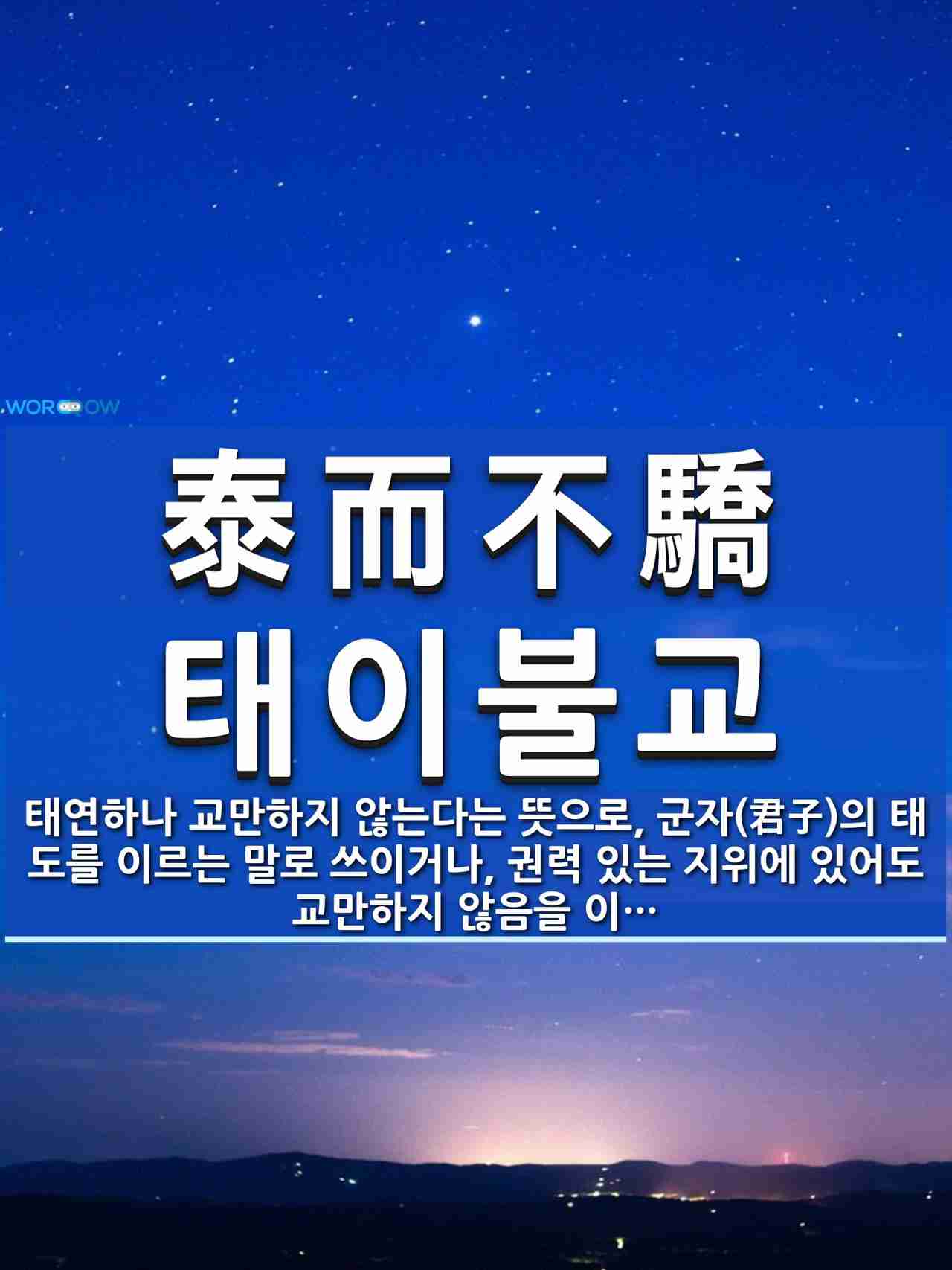 공자께서 “군자는 태연하되 교만하지 않고 소인은 교만하되 태연하지 않는다.”라고 말씀하셨다.