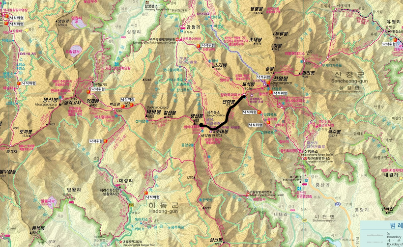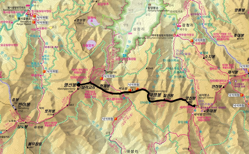 ▲ 셋째 날 경로: 연하천 대피소 ~ 세석 대피소