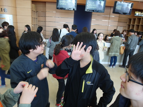 매표소에 연극팀도 모두 모였습니다. 초상권을 지키기 위한 븡이의 절박함^^