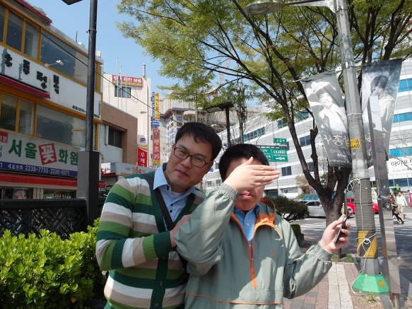 민석이와 한 컷. 사람들이 삼삼오오 모여 들고 있네요.
