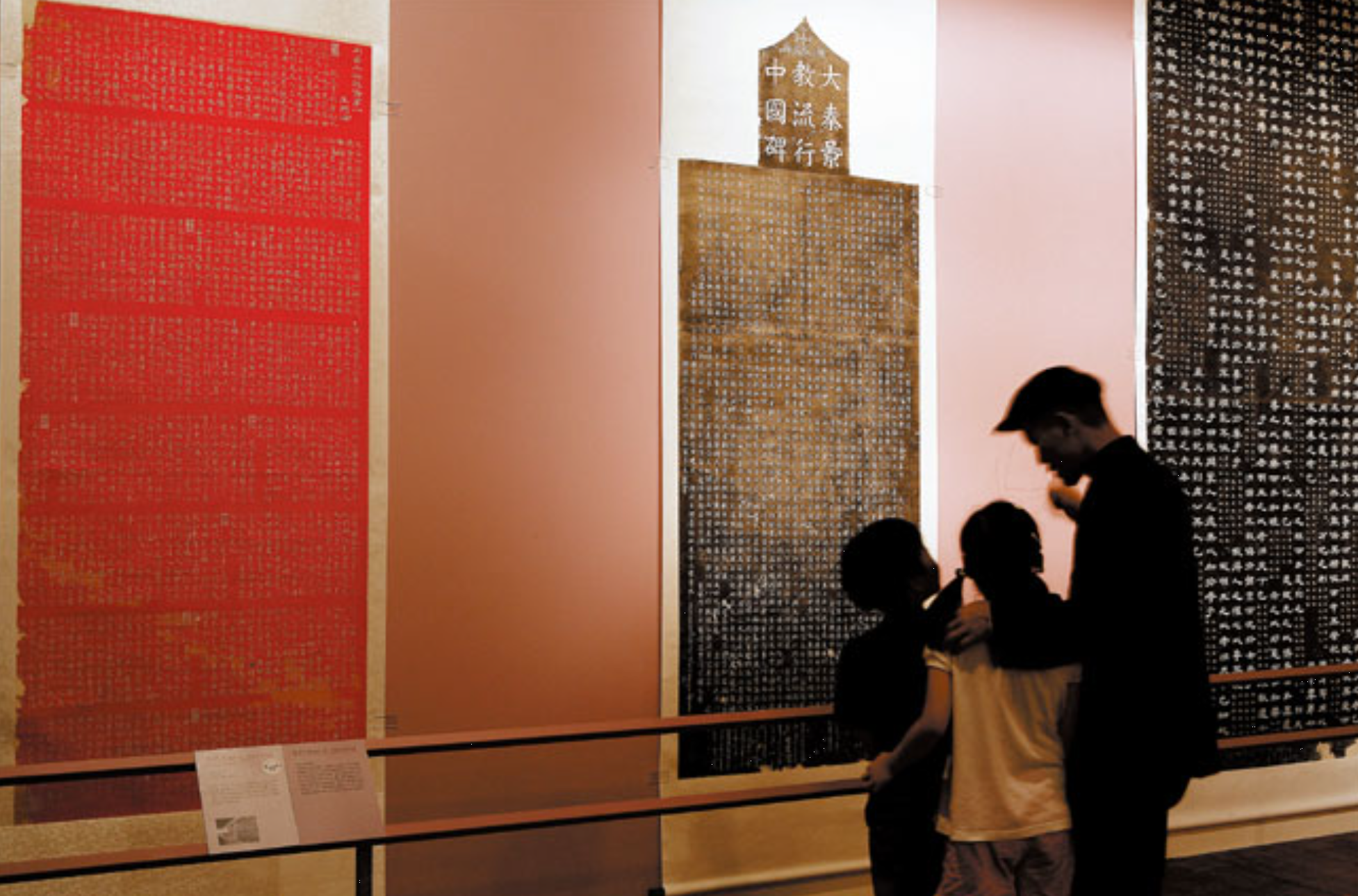 ▲ 2008년 7월 29일부터 8월 31일까지 새문안길에 있는 서울역사박물관에서 좋은 전시가 열렸다. 유구한 역사를 자랑하는 고도 서안(西安) 비림(碑林)의 장대한 비석(탁본)들이 전시되었다. 돌처럼 정확하게 역사를 전하는 문화매체는 없다. 우리의 관심을 끄는 것은 중앙에 있는 대진경교유행중국비(大秦景敎流行中國碑)이다. ‘대진’이란 로마제국이다. ‘경교’란 기독교를 가리킨다. 로마제국의 기독교가 중국에 유행한 것을 기념하는 비라는 뜻인데 당나라 건중 2년(781)에 세워진 것이다. 그러니까 기독교는 이미 우리나라 통일신라 불국사가 완성되었을 즈음 중원에서 유행하고 있었고 비의 내용으로 보아 당나라 때 신약성서 27 서가 이미 한문으로 번역되었음을 알 수 있다. ‘경교’는 431년 에베소 공회에서 파문당한 네스토리우스(Nestorius) 일파의 기독교인데 그는 예수의 인성을 100% 인정해야 한다는 생각 때문에 아리우스의 부활로서 오인된 것이다. 경교는 도마복음서의 전통을 보지(保持)하고 있던 에데사왕국에서 보호를 받고 페르시아를 거쳐 실크로드를 따라 중국에 온 것이다. 당태종은 황당한 기적이나 십자가 죽음이나 부활을 말하지 않는 기독교를 현묘무위(玄妙無爲)하고 제물리인(濟物利人)하므로 천하에 행하여질 만하다고 하였다. 한국사람이라면 이런 전시를 더 선호해야 하지 않을까? 시원찮은 루브르박물관 부스러기보다는 우리에게 더 의미있는 전시가 아닐까? 오른쪽 탁본은 당현종 친필 『효경』비, 왼쪽은 왕필 주 『주역』 개성석경, 사진 속 관람 어린이, 지윤과 재찬.