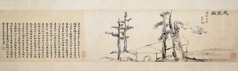 | 嶙峋有古栢 托根深山中 | 첩첩산중[嶙峋]에 오랜 측백나무 있어 깊은 산 속에 뿌리 뻗었네. |