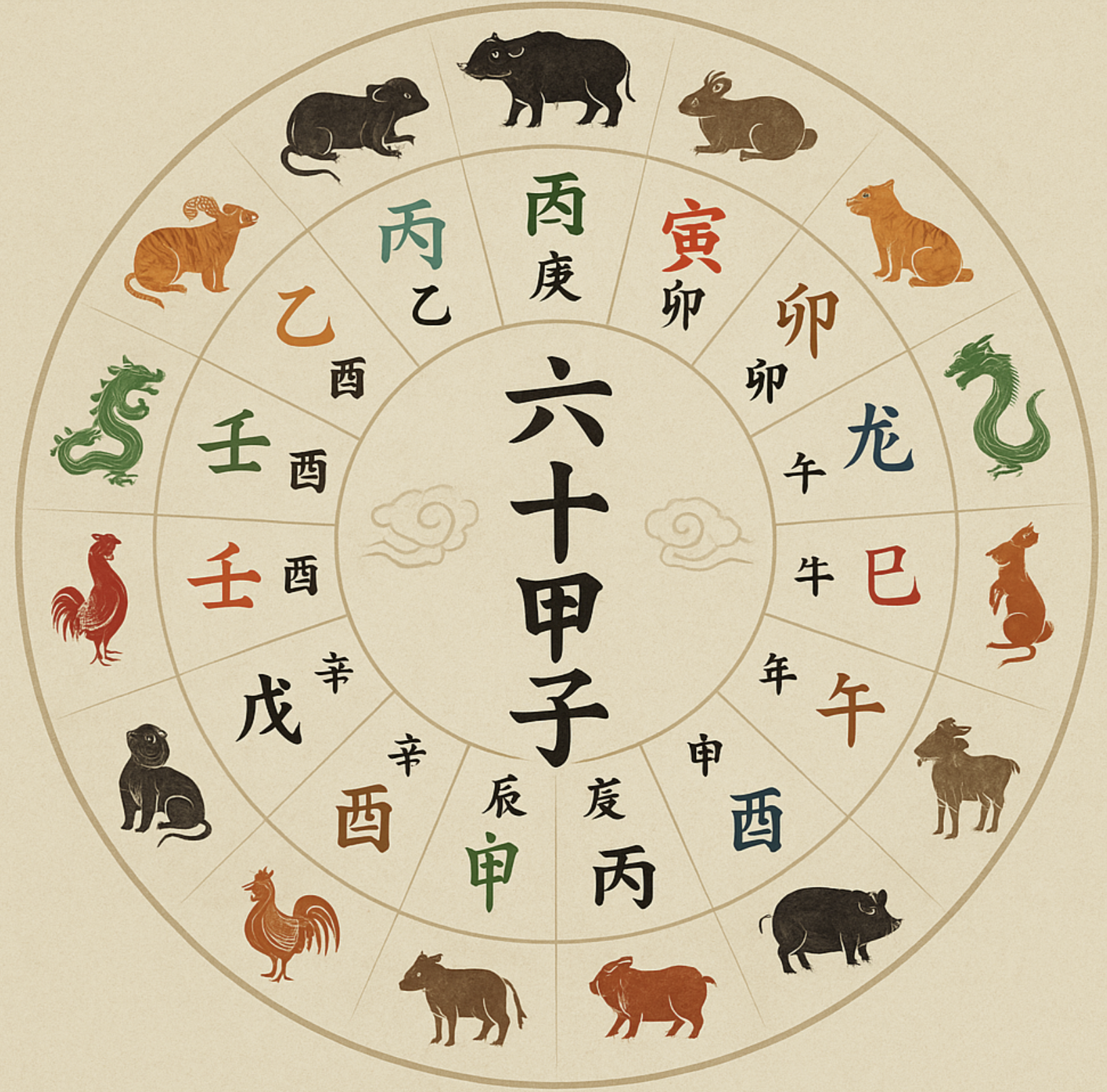 | 60갑자 | 동물 | 색상 | ||||||||