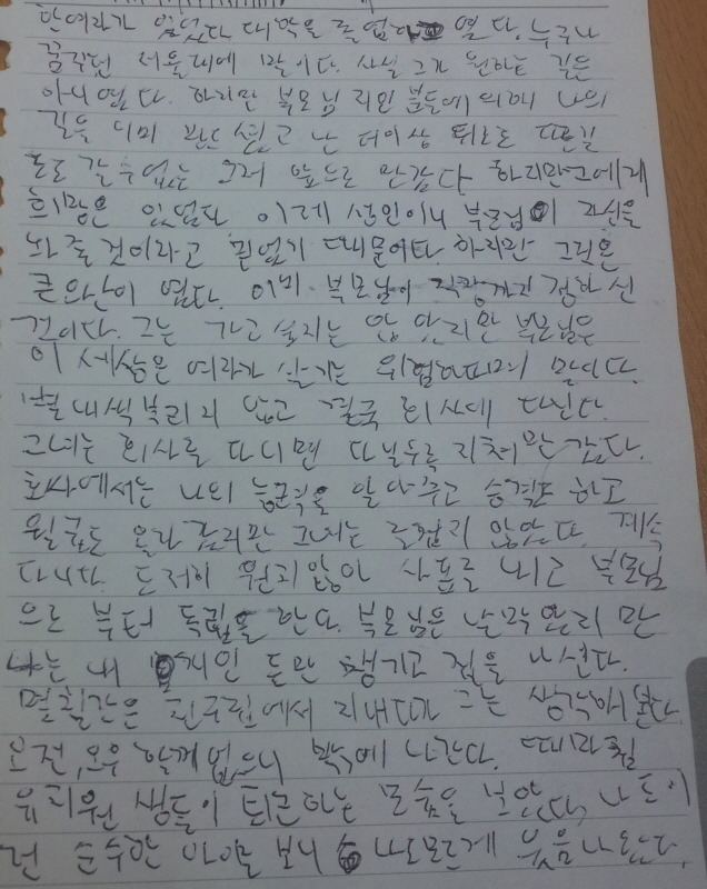 그래서 그는 어느 매점이나 가서 일을 하고 싶다고 말을 했다. 하지만, 모두 거절했다. 그가 간 대부분의 곳은 알바생이 있던 곳이거나, 주인 혼자 일을 해도 상관없는 곳이었다. 더 큰 점은 그가 복장에 신경을 쓰지 않고 돌아다녔다는 것이다. 노숙자처럼 생긴 사람이 “일을 하고 싶습니다.” 라고 하면 누가 돈을 주고 싶겠는가? 실업자가 넘쳐나고, 알바가 넘쳐나는 사회인데.
