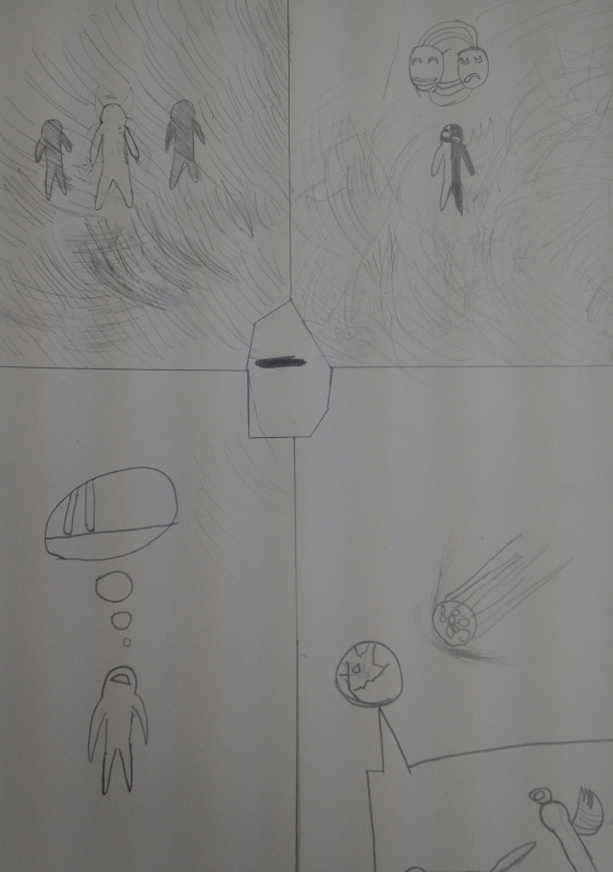 일어나보니 뭔가 느낌이 이상하였다. 자신의 몸이 보였다. “이것이 유체이탈이구나” 그는 이렇게 생각하면서 공중에 떠 있었다. 이렇게 누워 있는데 근처에 사람들이 지나가는 소리들이 들렸다. “살려주세요 !! 살랴주세요 !!” 그는 소리쳤다. 조금 뒤 이상한 생명체가 지나가는 것을 본 그는 공포에 질렸다. 그 이상한 생명체는 말벌이었다. 이 벌은 자신을 향해서 날아왔다. 자신을 물고 날아간 그 벌은 작은 동굴 안으로 들어갔다. 이 생명체는 자신을 조금씩 뜯어먹기 시작하였다. 자신의 육체를 먹는 그 벌은 조금 뒤 자신의 발만 남기고 자신을 잡아먹었다.