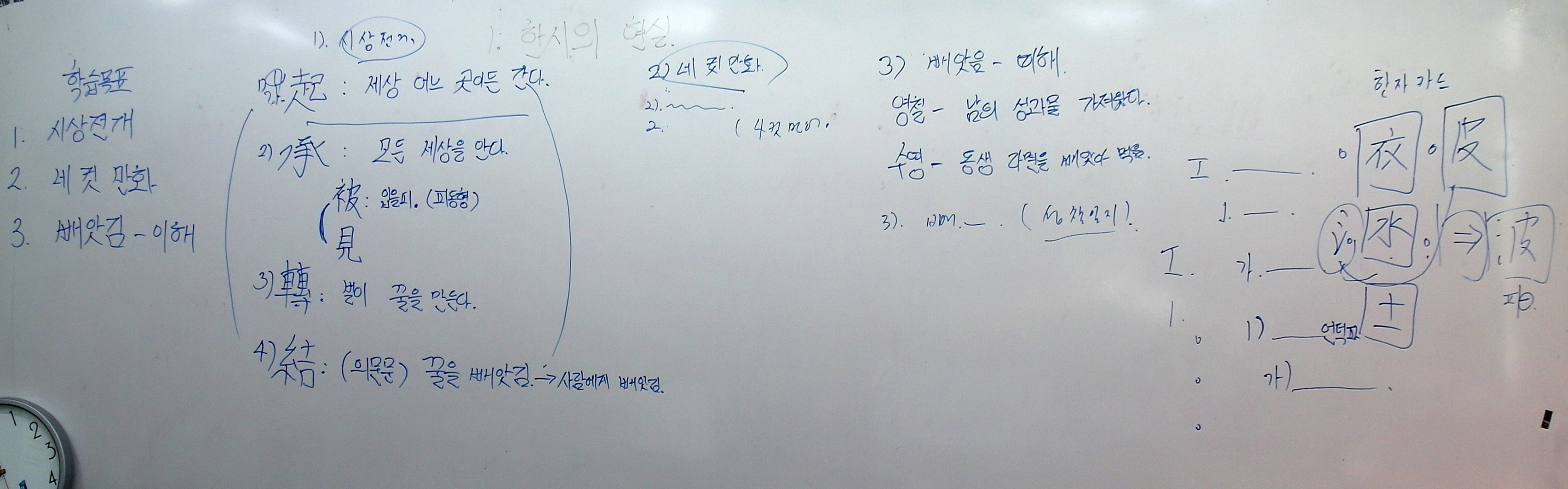(오른쪽에 쓰여 있는 한자카드를 가리키며) 이건 한자카드를 쓴 거야? 지금 한자카드를 쓴 건지, 모르겠어. 그냥 이게 판서인 줄 알았어.