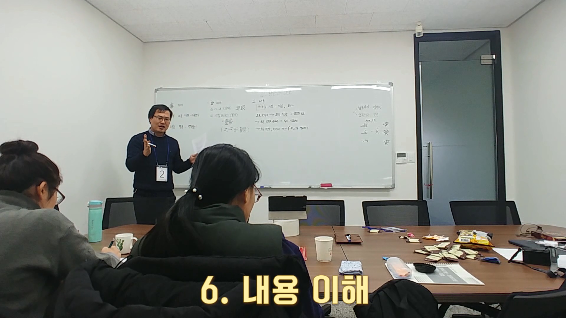 그래서 우리는 지금까지 처에 의미를 가지고 두 가지를 가지고 배웠어요. 그러면 지금부터는 모둠 활동을 하도록 할 텐데, 내용의 이해를 통, 내용의 이해를 해보도록 합시다. 근데 한문에는 내용을 서술해가는 방식에는 총 네 가지가 있다고 했었어요. 선생님이 이것을 PPT로 보여주긴 할 텐데, 한 번 기억나는 대로 이야기를 해봅시다.