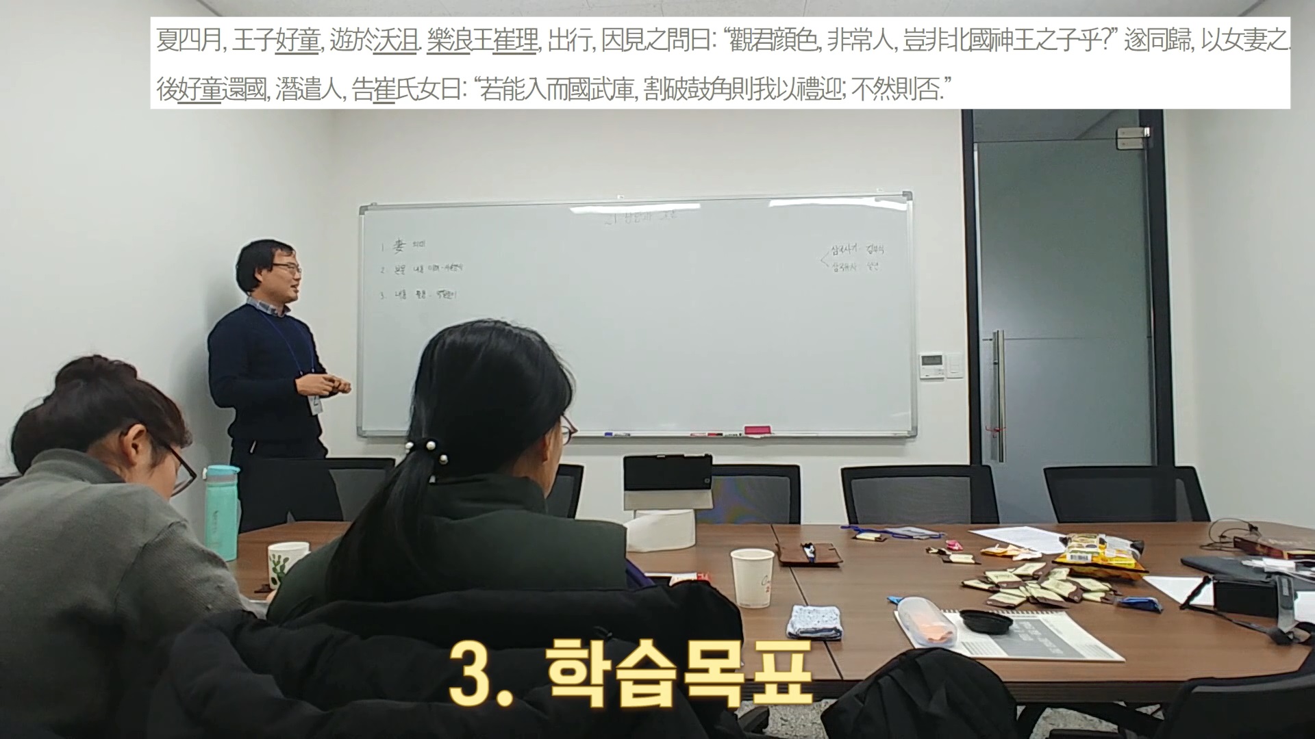 그래서 지금부터는 각 모둠별로 이야기를 나눌 건데, 이 글에는 스토리가 있어요. 스토리가 있는데 선생님이 아까 ‘딸로서 그에게 시집 보냈다’까지 풀이를 해줬으니까. 그 뒤에를 마저 풀이를 하고 여러분들이 이 스토리를 각 모둠에서 해서 스토리 진행을 써보도록 합시다.
