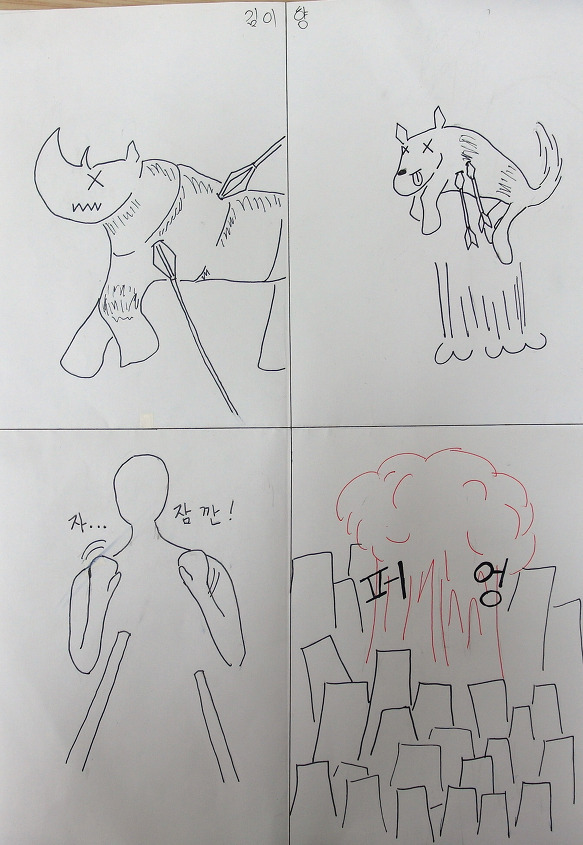 웅성웅성. 구경꾼의 말에 사람들이 웅성대다 하나 둘 씩 시간만 버렸다는 반응으로 발걸음을 돌린다. 그는 그제야 얼굴이 빨개진 채 호리병을 던져두고 걸음아 나 살려라 인파 속에 섞여 도망갔다. 쥐구멍에라도 숨고 싶은 심정으로!