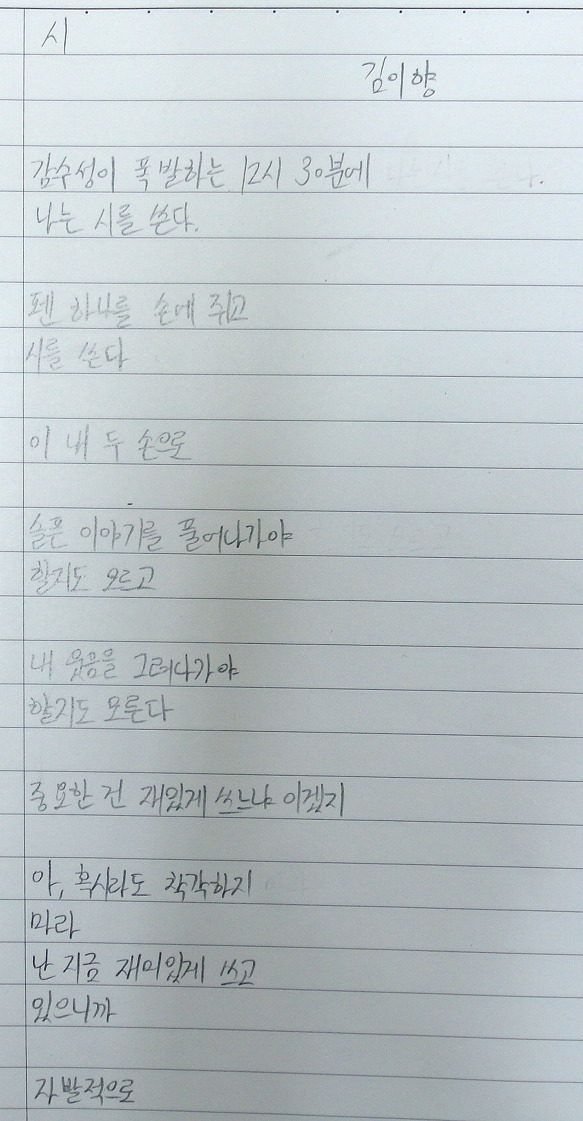 나는 시를 쓴다.