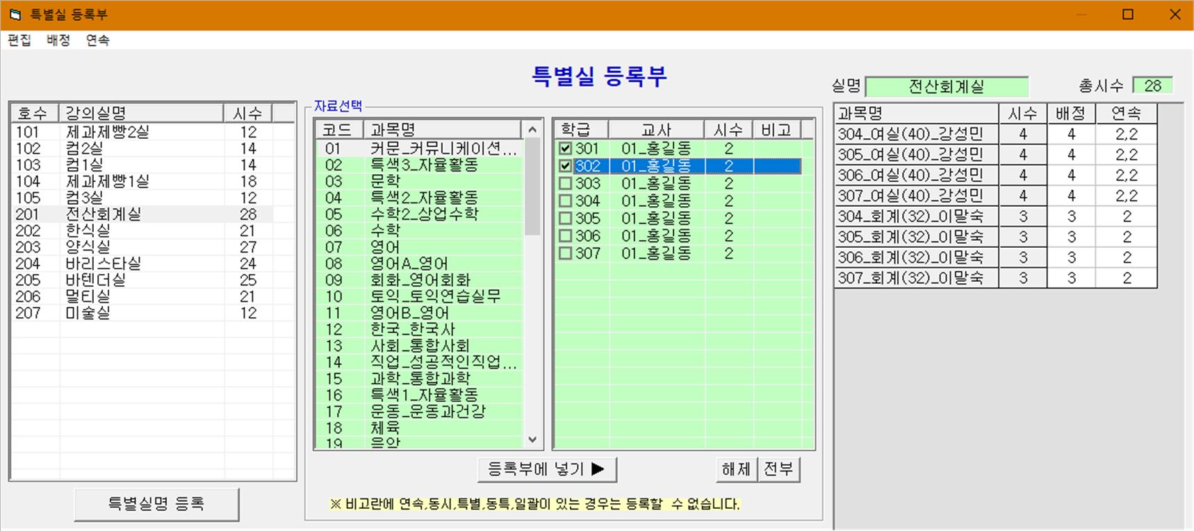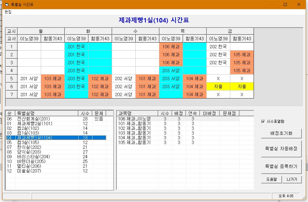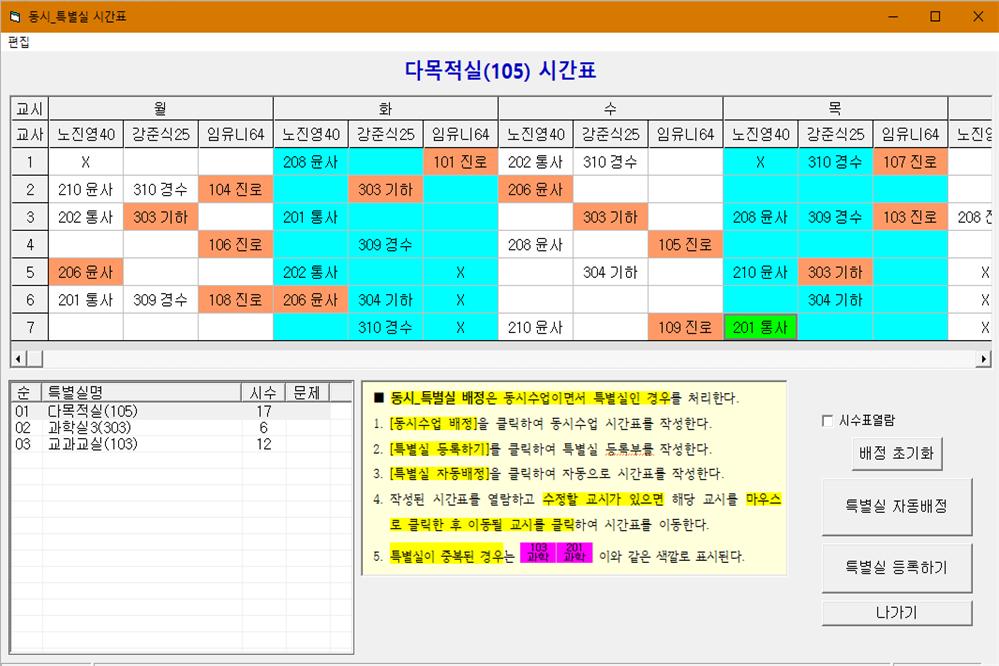 ▶특별실 배정 : 컴퓨터실이나 수학실등 공동으로 이용하는 것을 배정합니다.