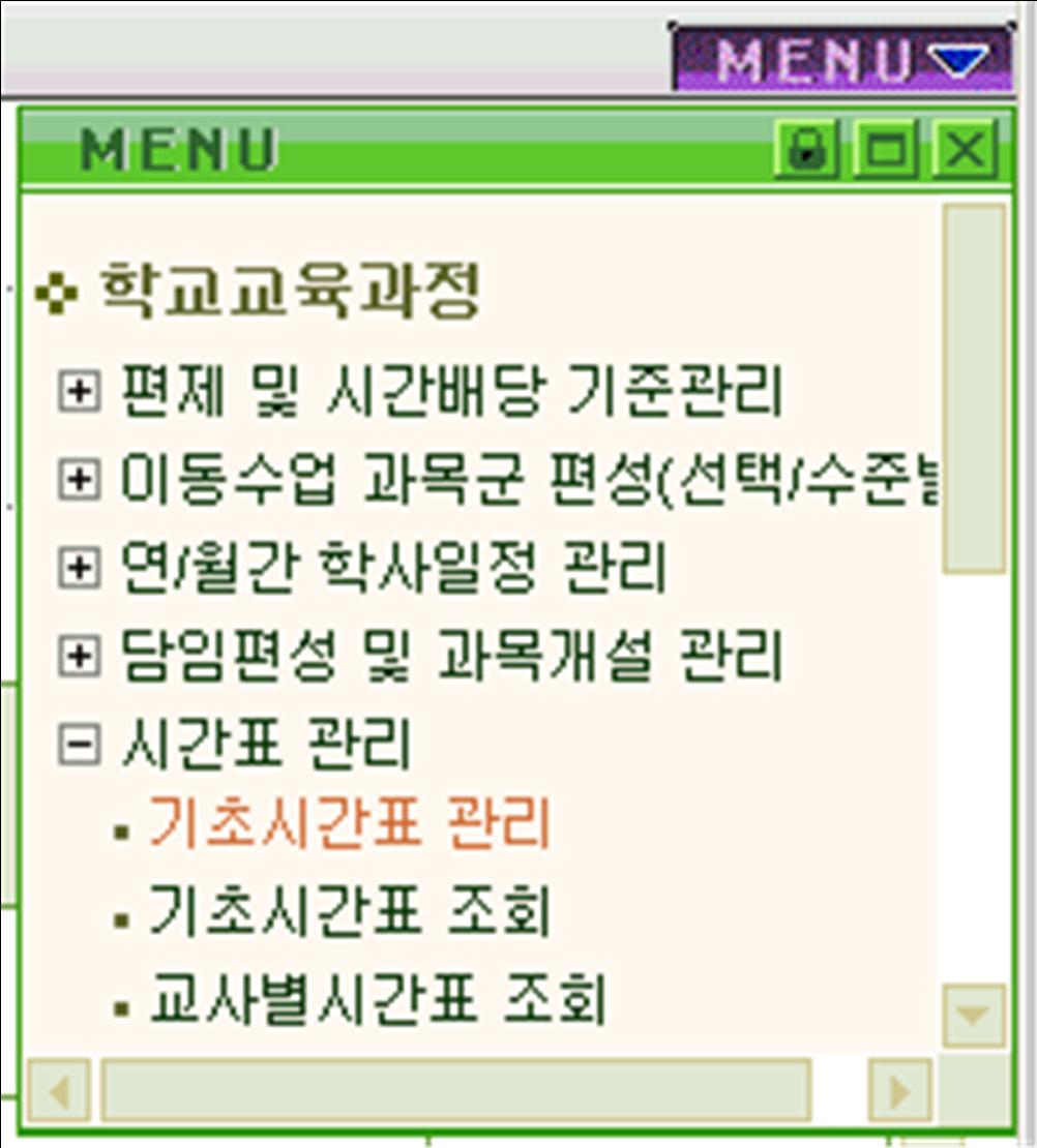 (5) [학교교육과정]-[시간표 관리]의 기초시간표 관리를 선택한다.