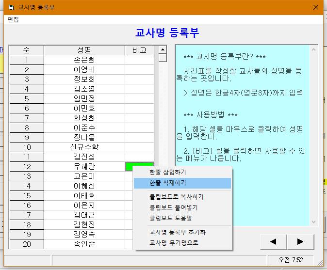 (7) 교사명이 맞지 않는 경우에는 [성명 등록부]에서 교사명을 수정합니다.