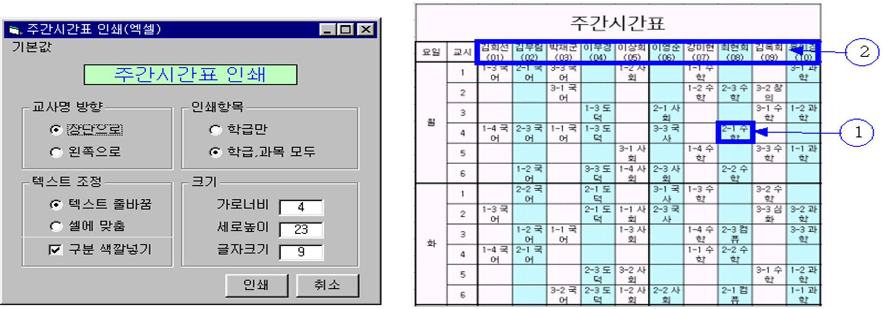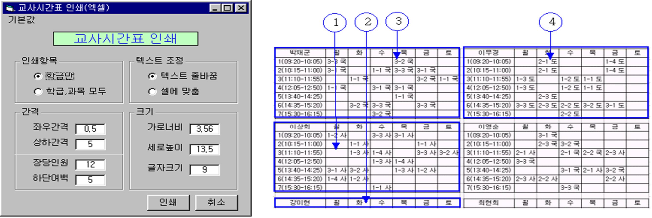 (다) 장당인원 : 용지 한 장에 들어가는 학급시간표의 수를 말한다.