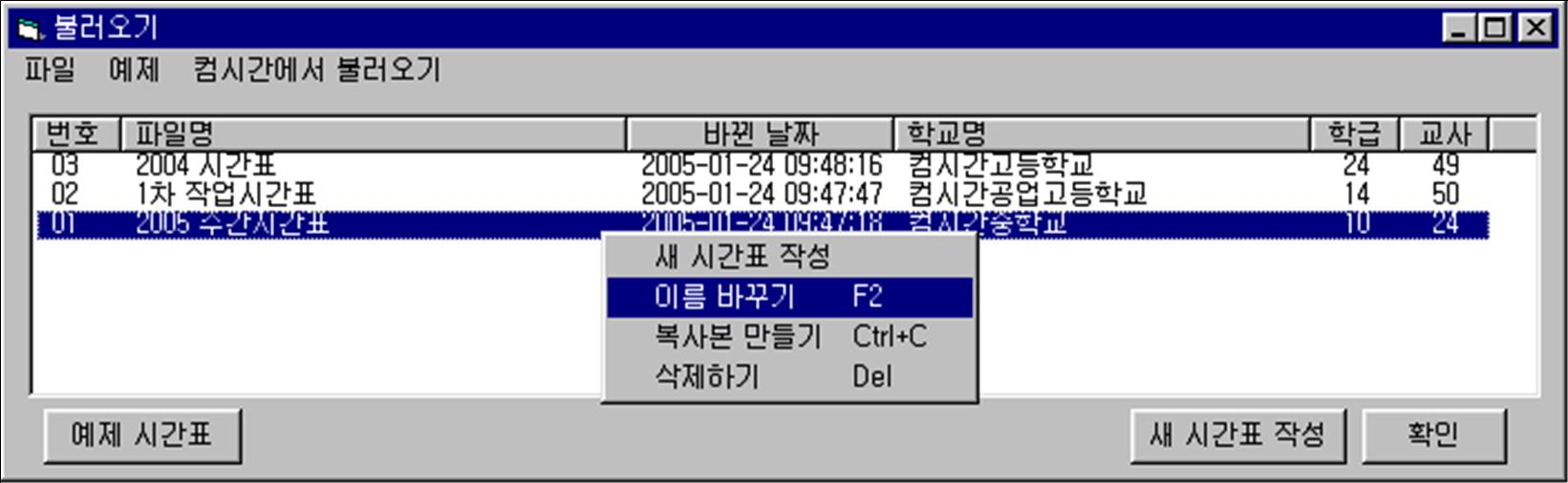 (2) [컴시간에서 불러오기] 메뉴를 사용하면 컴시간에서 마지막으로 저장한 파일을 불러올 수 있다.