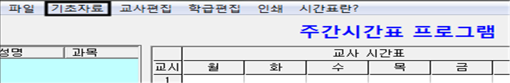 (3) 시간표를 작성하기 위한 기초자료를 입력하기 위해 [기초자료] 메뉴를 선택합니다.