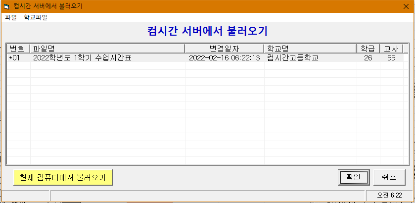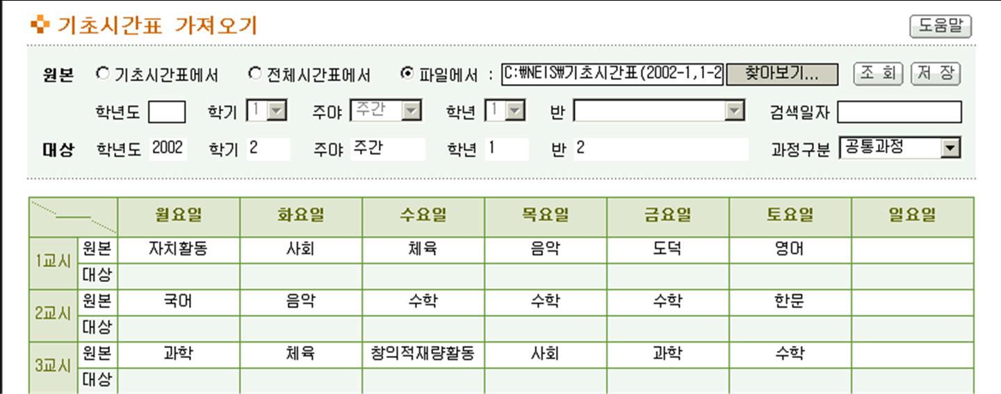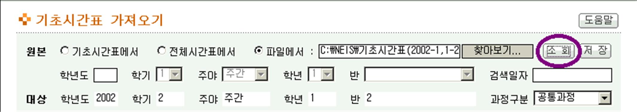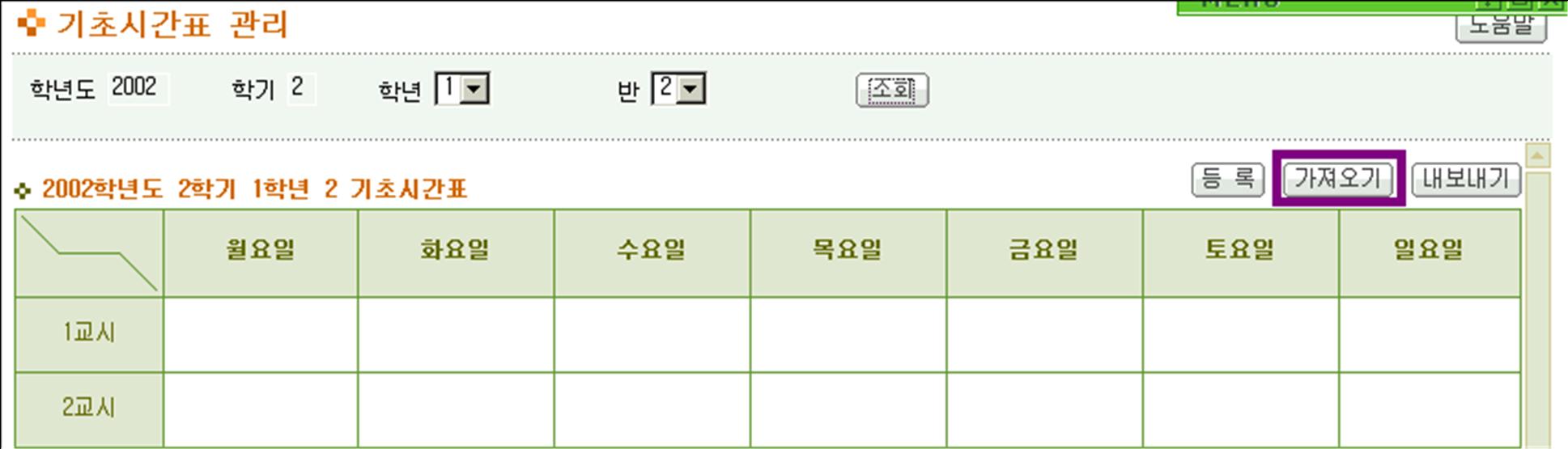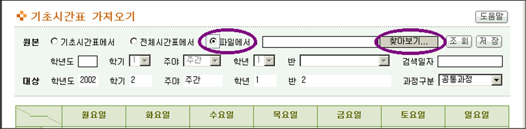(1) 기 작성한 시간표를 자체컴퓨터에서 불러오고자 할 때 사용한다.