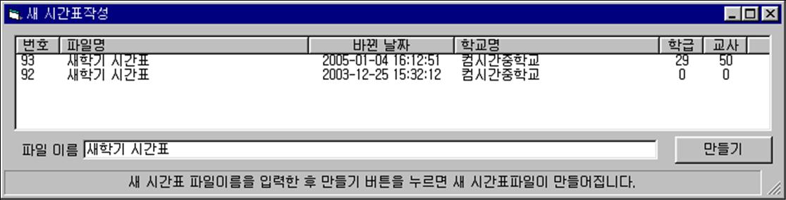 (2) 시간표를 작성하려는 파일명을 입력한다.
