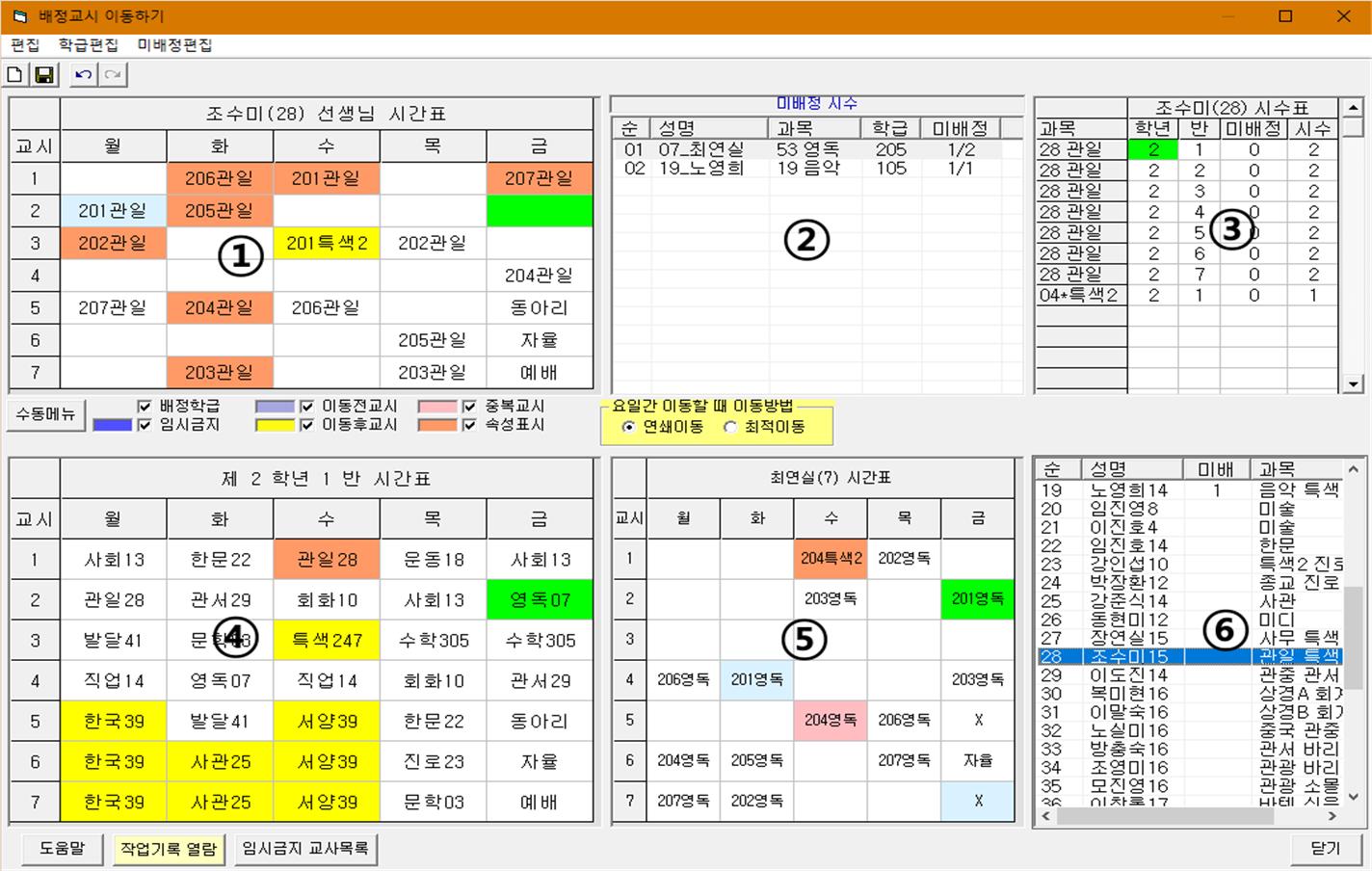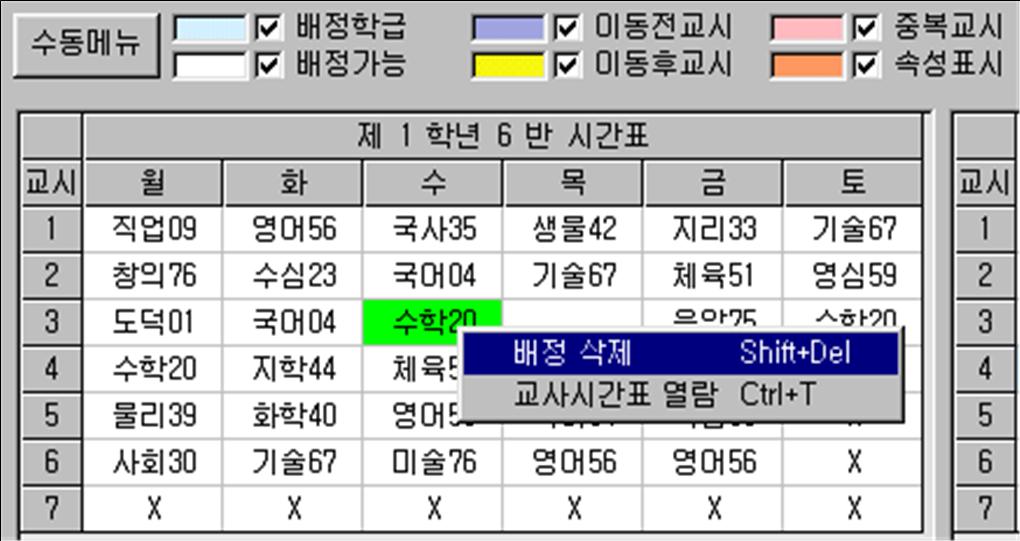 ▶ 특별교사 배정 : 이동금지나 배정금지 교시를 설정합니다.