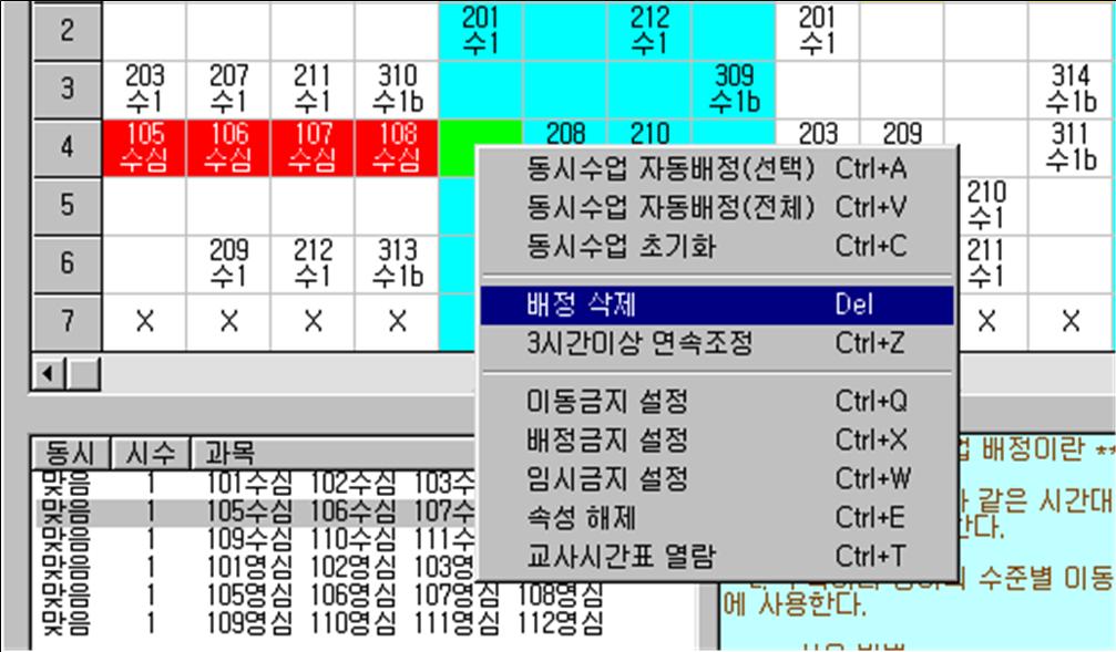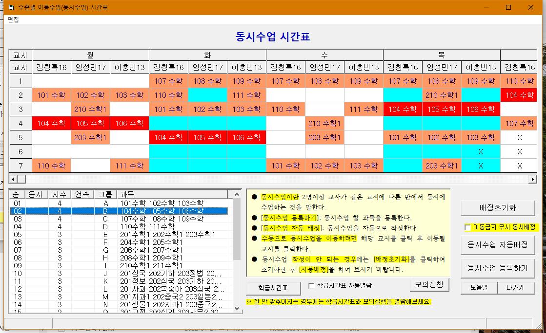 ▶ 동시수업 배정 : 수학이나 영어처럼 수준별 이동수업을 배정합니다.