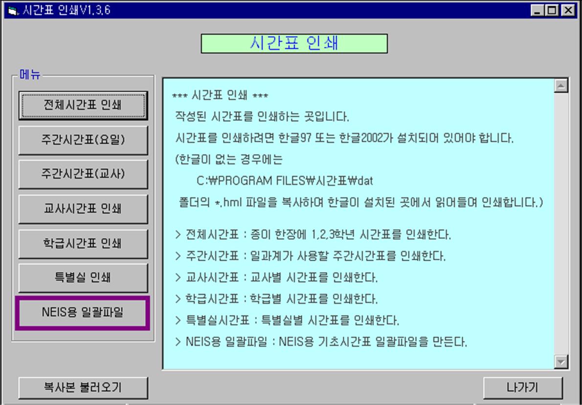 10. NEIS에 기초시간표 일괄파일 올리기