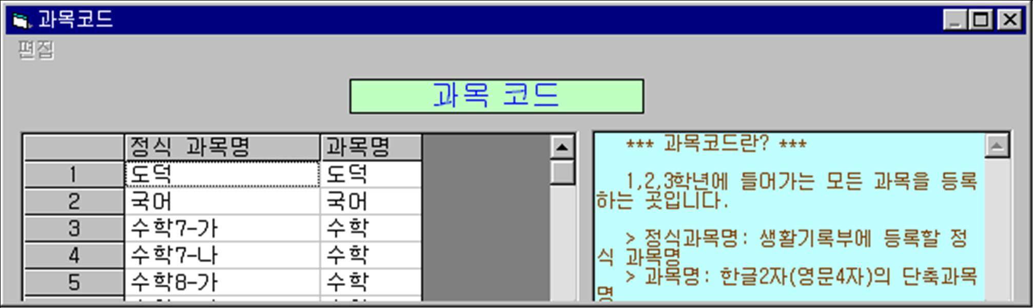(6) 정식과목명을 NEIS의 개설과목명과 일치시킬 수 있도록 수정합니다.