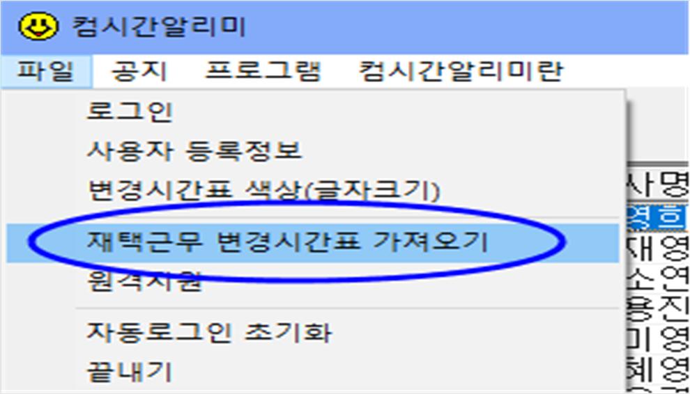 ④ 컴시간 알리미에서 ‘파일-재택근무 파일 가져오기’ 실행