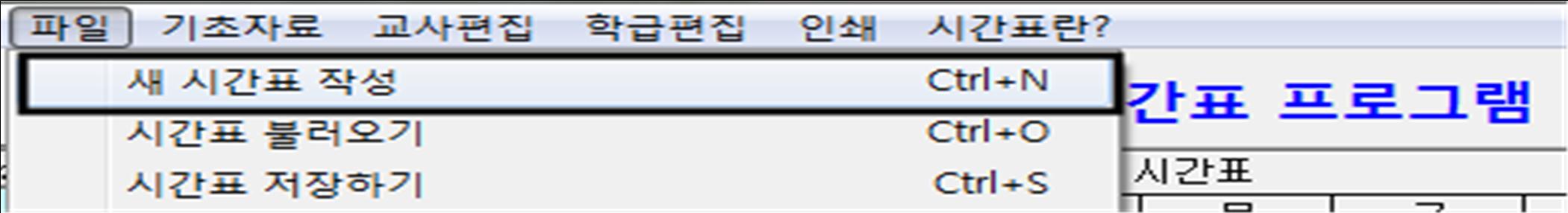 (2) [파일]-[새 시간표 작성]을 클릭하여 새 시간표용 파일을 생성합니다.