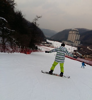 어제 기태에게 보드 타는 법을 배워 보니, 기태도 실력은 초보일 뿐이었다. 힐엣지만 간신히 되며, 토엣지는 거의 되지 않았으니 말이다. 그런데도 의욕만 앞선다. 그러니 무작정 중급코스로 가서 턴을 하는 연습만 하려 하더라. 아무래도 어제 나와 현세를 챙겨 주느라 맘껏 못 탔던 한이 있기 때문인지, 이 날도 처음에만 초급코스에서 탔을 뿐 바로 중급코스로 가버렸다.
