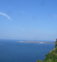 ▲ 성산일출봉에서 내려와 보면 우도가 저 멀리 보인다.