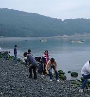 규빈이는 거침없이 물에 들어가 고기와 다슬기를 잡기 시작했고, 민석이와 현세, 지민이도 쭈뼛쭈뼛 물 근처로 다가갔다. 신발을 신고 왔기에 들어갈까 말까 고민하는 듯하더니, 급기야 신발을 벗고 바지를 걷고 들어간 것이다.