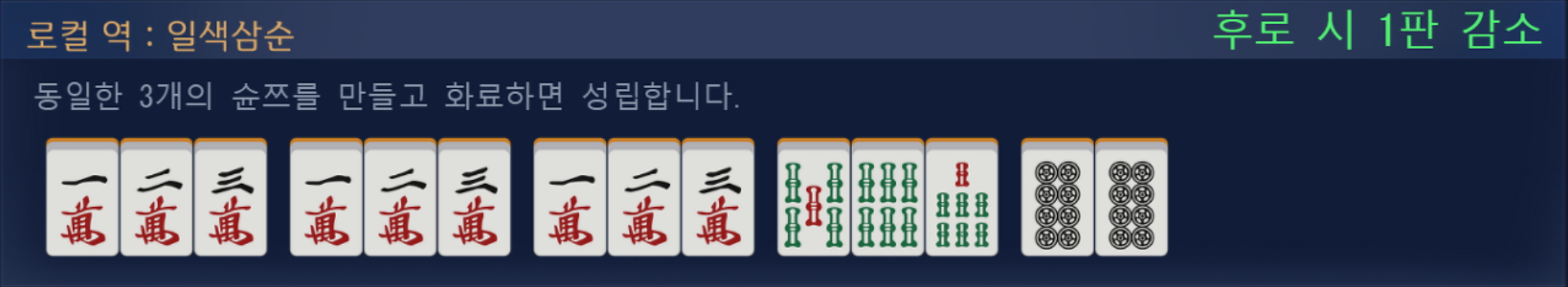 로컬 역 일색삼순(一色三順): 동일한 3개의 슌쯔를 만들어 화료하면 성립.