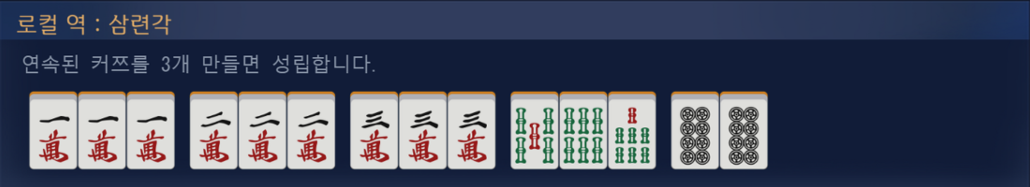 로컬 역 삼련각(三連刻): 연속된 커쯔를 3개 만들면 성립.