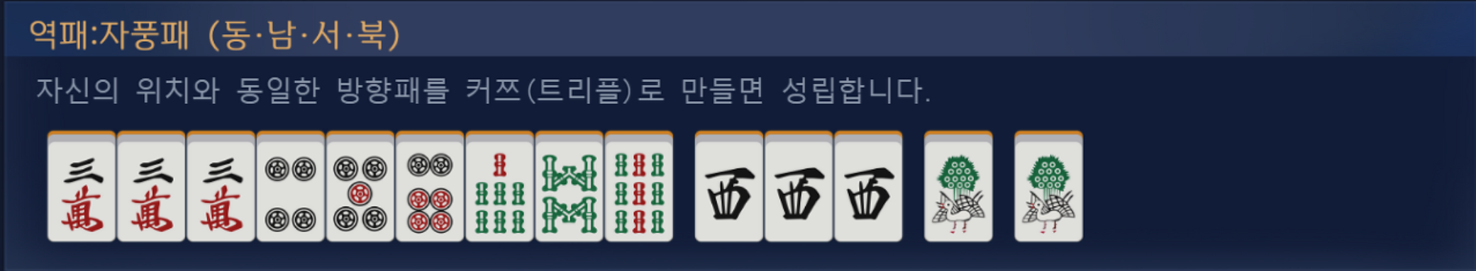 역패 자풍패(自風牌): 자신의 방향패를 커쯔로 만들면 성립.