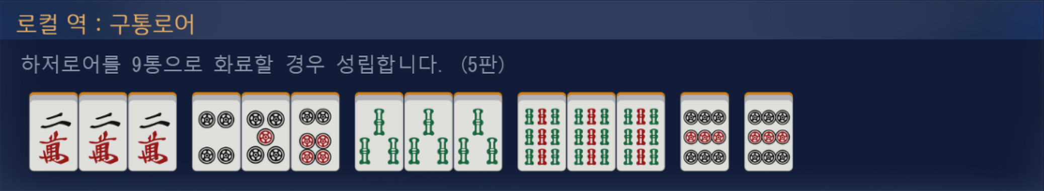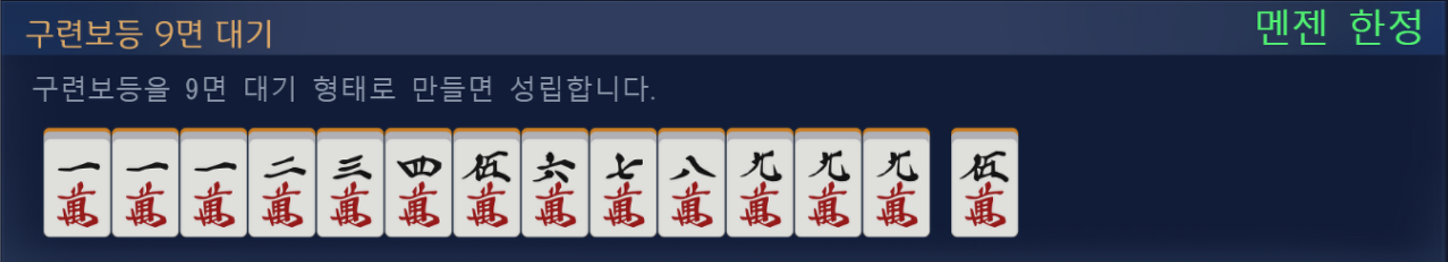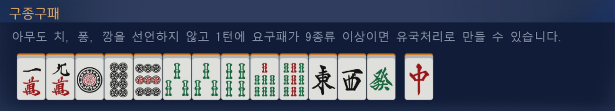 구종구패(九種九牌): 누구도 울지 않았을 때 1턴에 요구패가 9종류 이상일 때