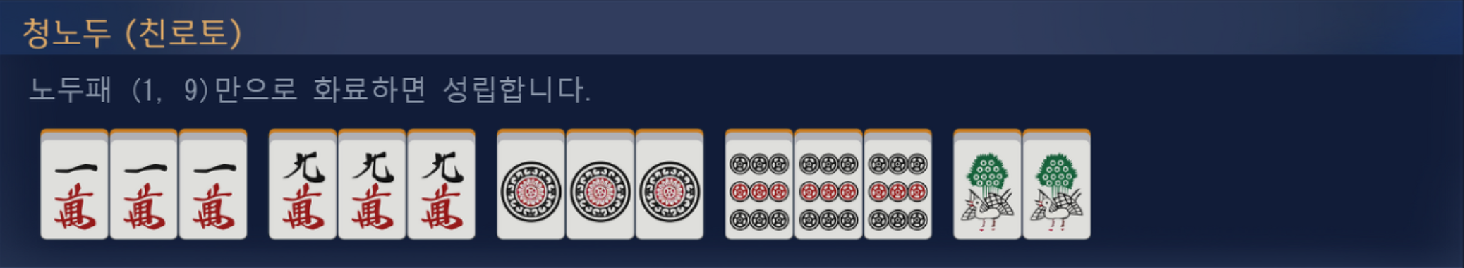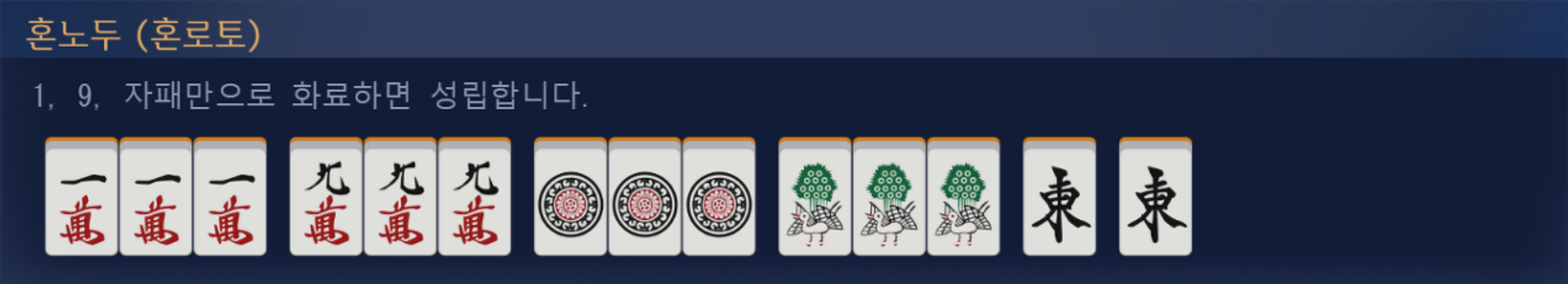 혼로토(혼노두, 混老頭): 1ㆍ9ㆍ자패만으로 화료하면 성립.