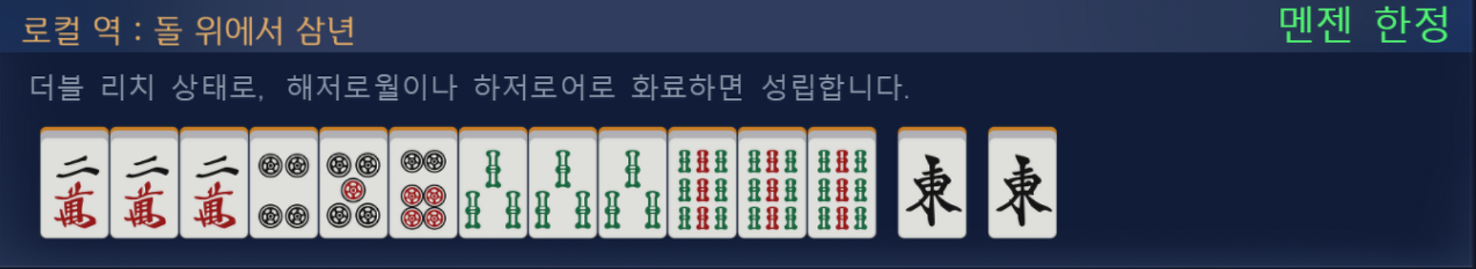로컬 역 돌 위에서 삼년(石の上にも三年): 더블 리치 상태에서 해저로월이나 하저로어를 만들면 성립