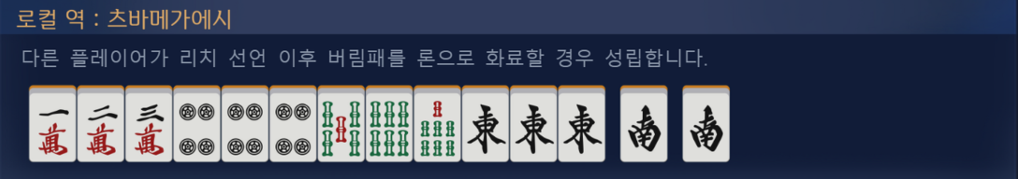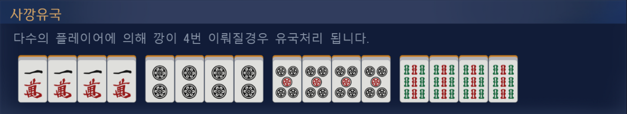 유국만관(流し満貫): 유국 시, 자신의 버림패가 모두 요구패면 성립.