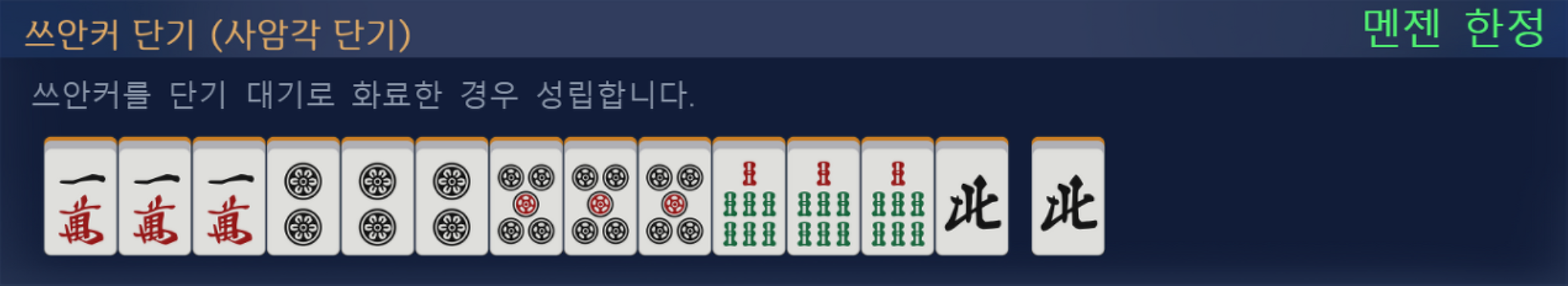사암각 단기(쓰안커 단기, 四暗刻 単騎): 사암각을 단기 대기로 화료할 경우 성립.