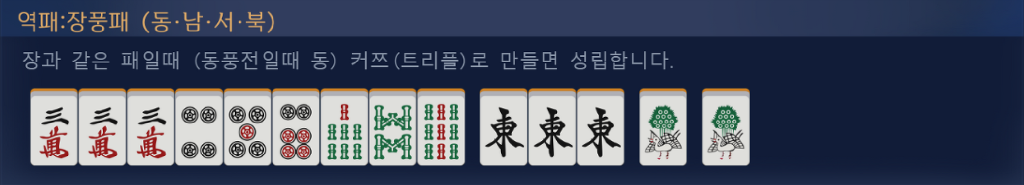 역패 장풍패(場風牌): 장과 같은 패를 커쯔로 만들면 성립.