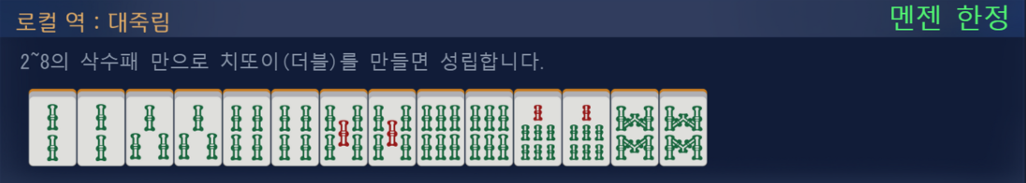 로컬 역 대죽림(大竹林): 2~8 삭수패로 치또이를 만들면 성립.