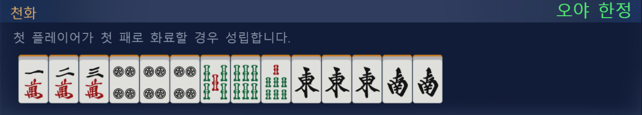 천화(天和): 첫 게임자가 첫 패로 화료할 때 성립.